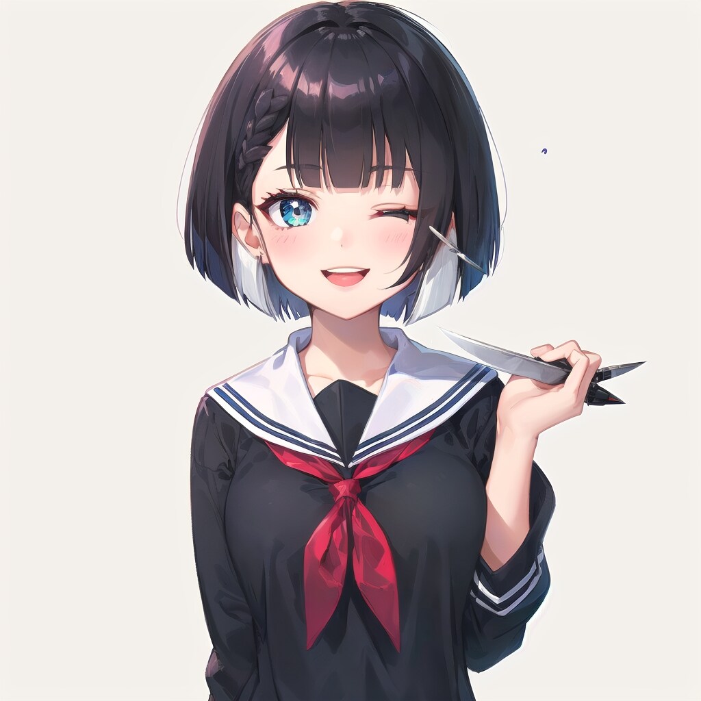 ウインクは意外に難しいですね。強調入れすぎてアイパッチになったり、ペンの代わりにナイフ持ってたり😅