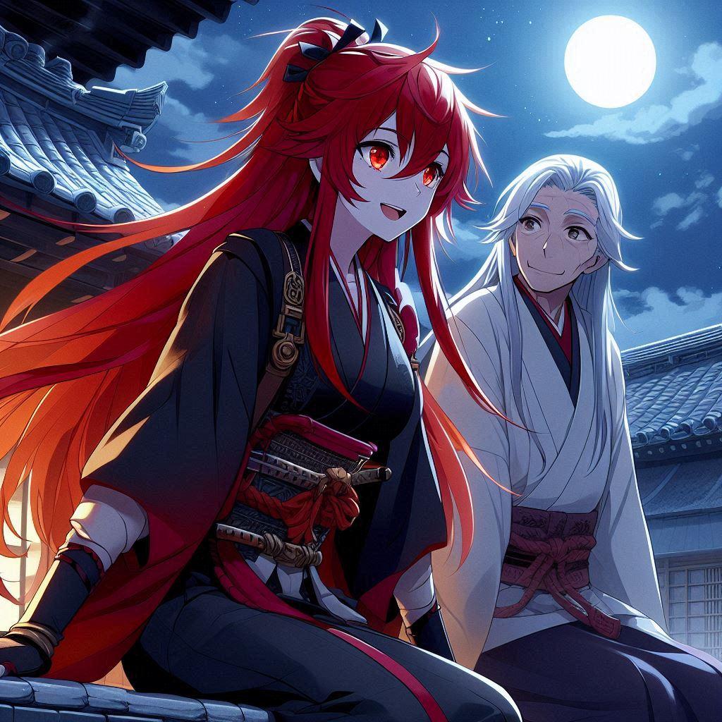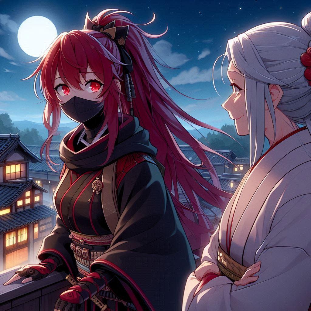 ヤスケの屋敷、屋根の上で話すマリカとおばば。