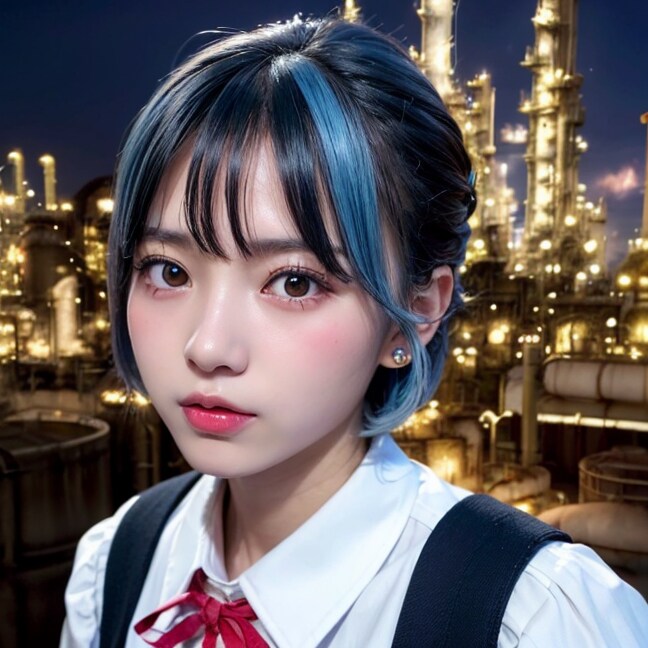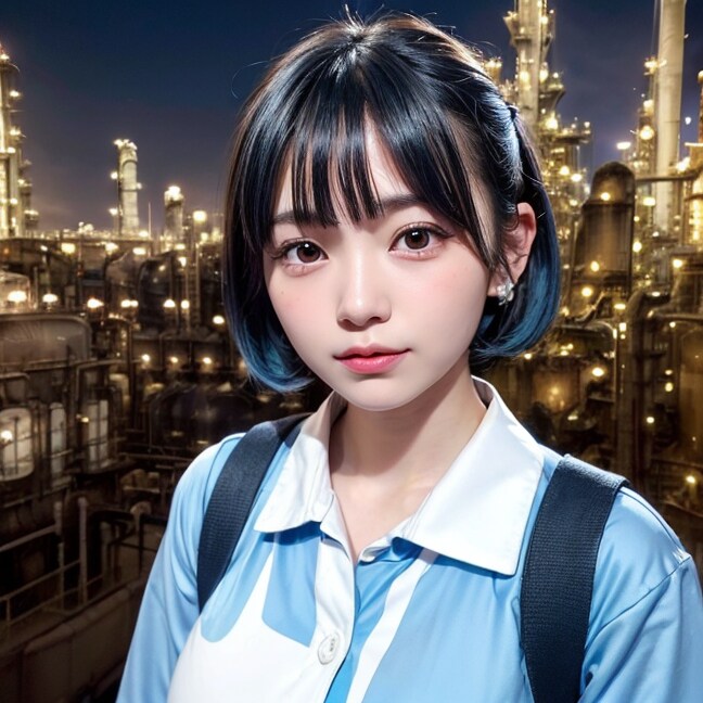 プロンプトは石油コンビナートと夜景!すなわちOil refineryとnight viewなのである!