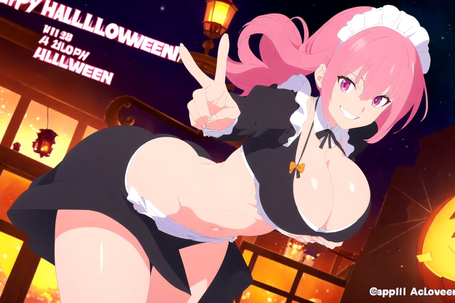 OPALでハロウィーン雰囲気の「ちちぷい2周年」のVサイン