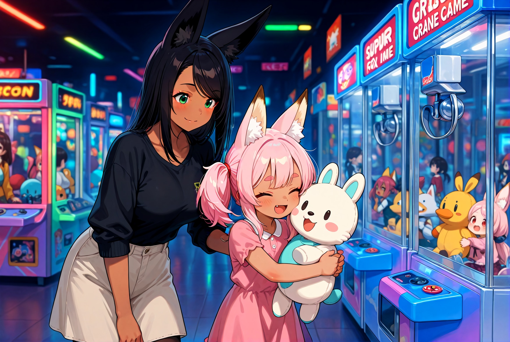 1枚目格ゲー、2枚目はレースゲーム、3枚目はドラムゲーム、4枚目はクレーンゲームをやっています(*'▽')