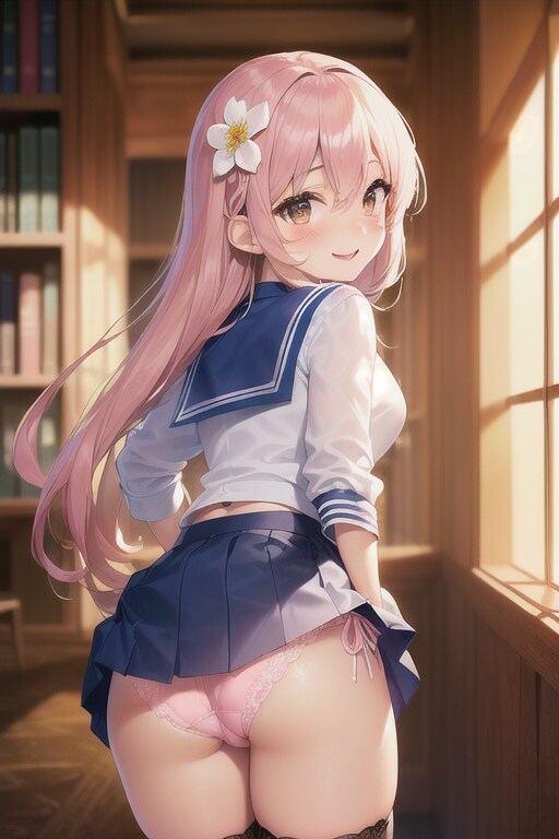 桃髪ロングちゃん、パンツもかわいいピンク色です!