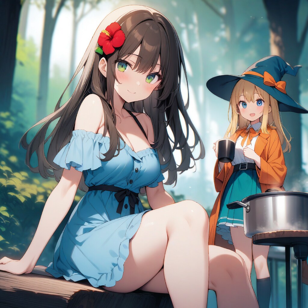 少し離れた場所では、魔法少女が飲み物を片手にほっと息をついている。彼女も私と同じで、島娘の料理を心待ちにしているようだ。森の静けさと湯気の立つ温かさが溶け合い、しばし旅の疲れを忘れさせてくれた。