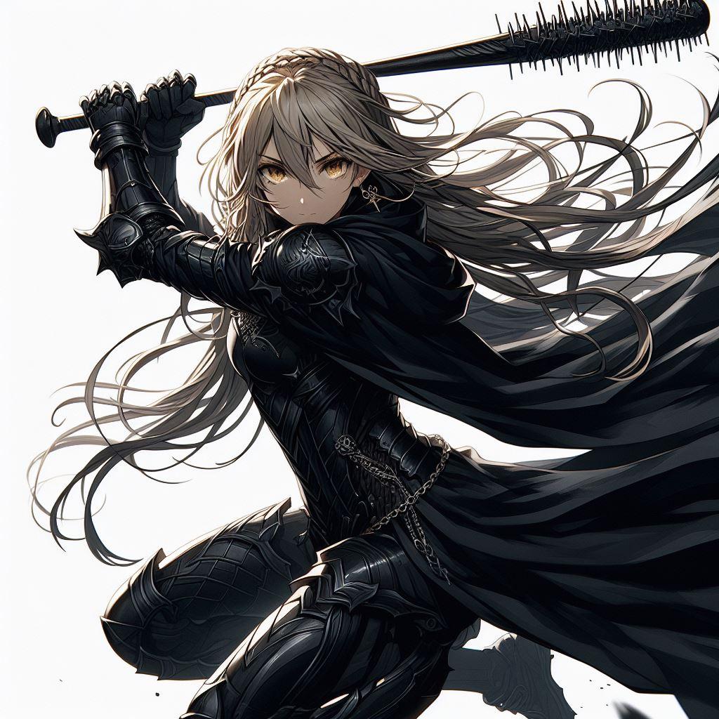 釘バット(ネタ武器)持つブロンドの女騎士さん
