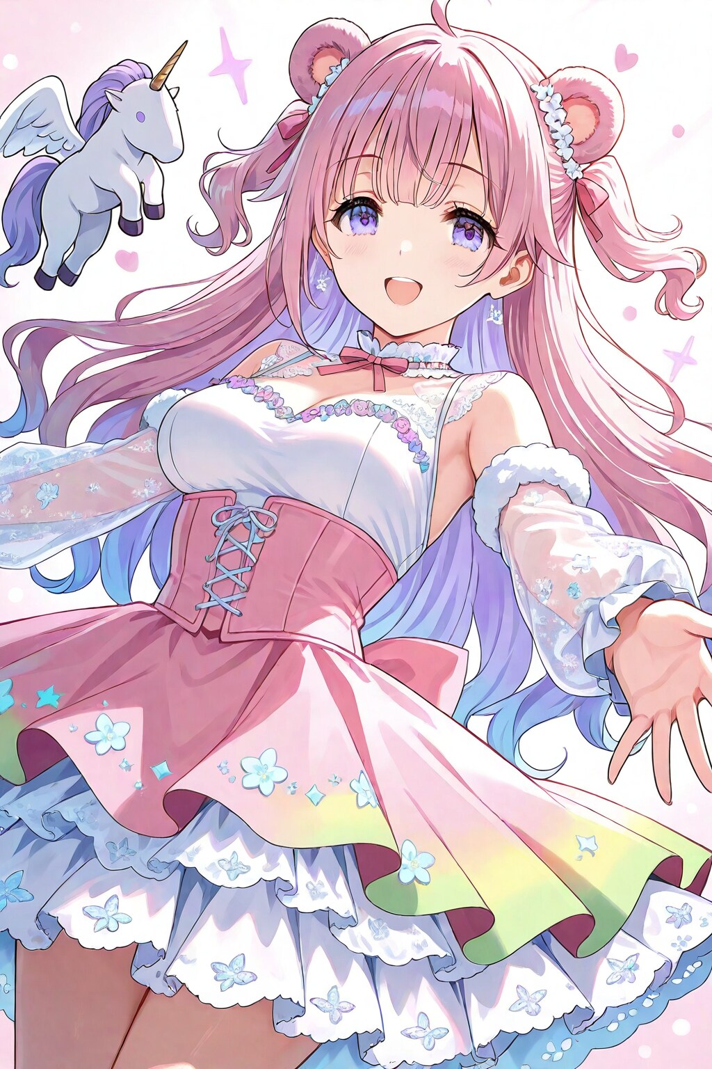 お洋服はかわいいので楽しいけど、お目々はわりとプロンプトしっかり入れないと光が足りないので、元気がなくなってしまう…(目のプロンプト無し→2枚目)