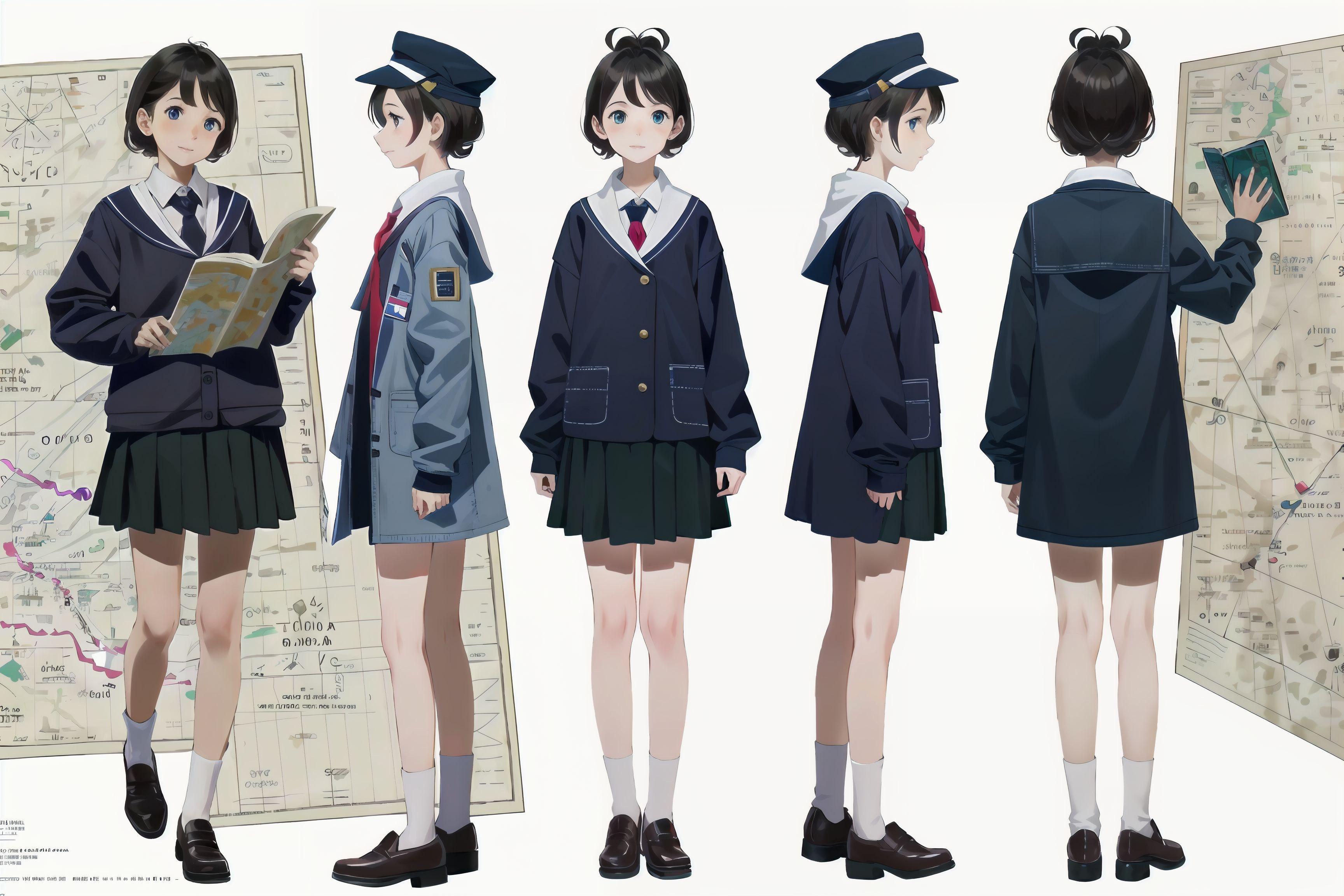 2枚目以降は上のプロンプトを (full body, three views , side view ,reference sheet ,magazine cover),