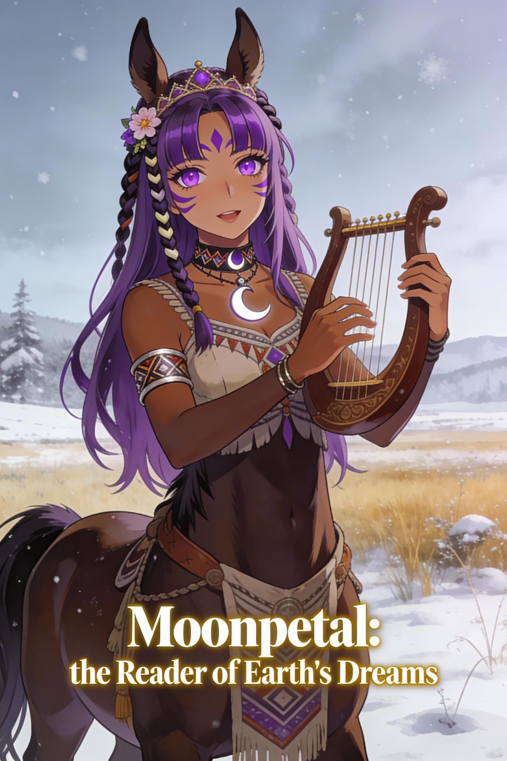 元作品は大平原の月夜に竪琴を持っている姿です。