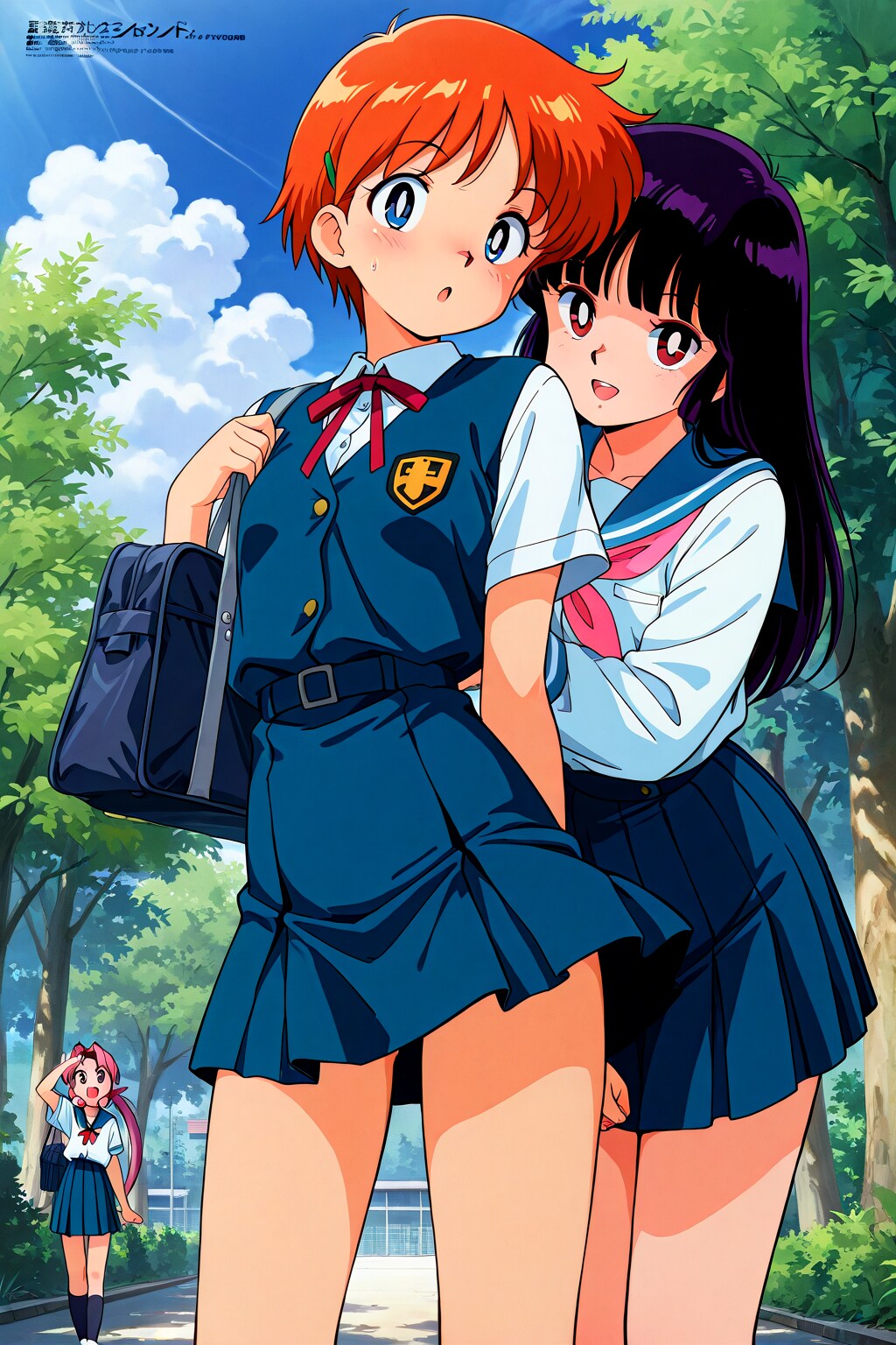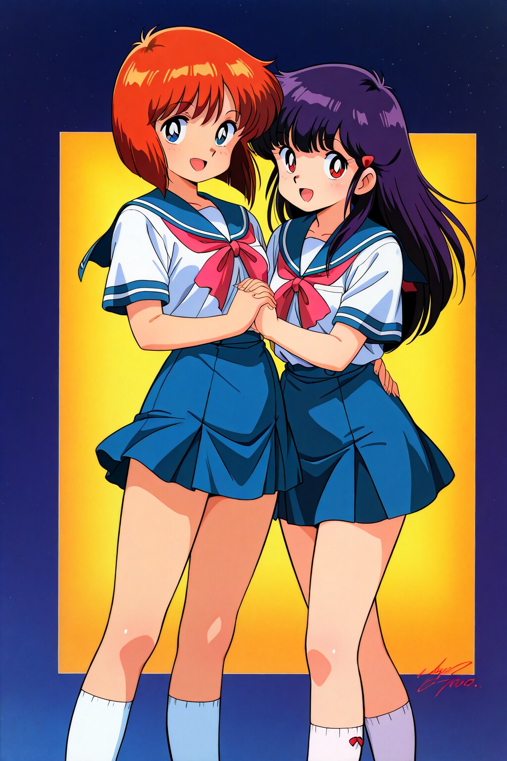 8枚目 縦長で先攻 2000s anime style、後攻 1970s anime style(分割なし)※先攻後攻はプロンプトの順序