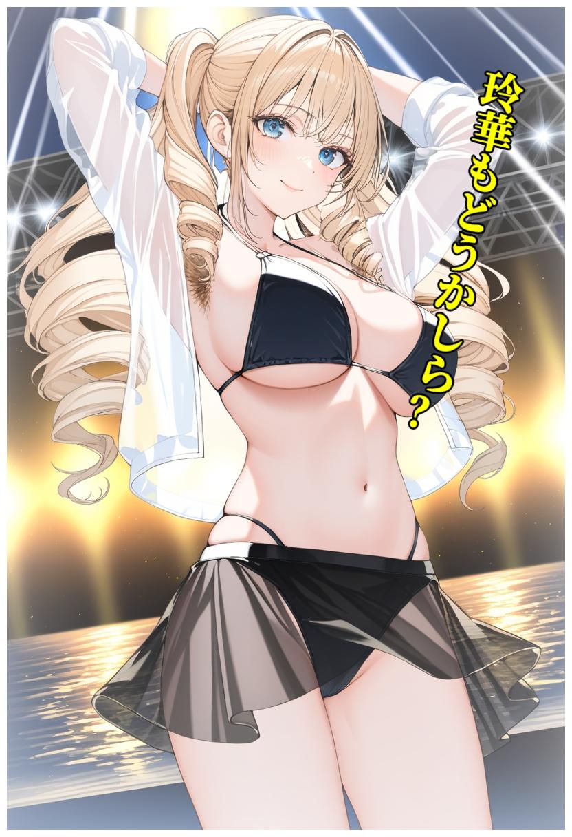 柊瑠美華は黄金のスポットライトをバックに生い茂る腋毛を見せ