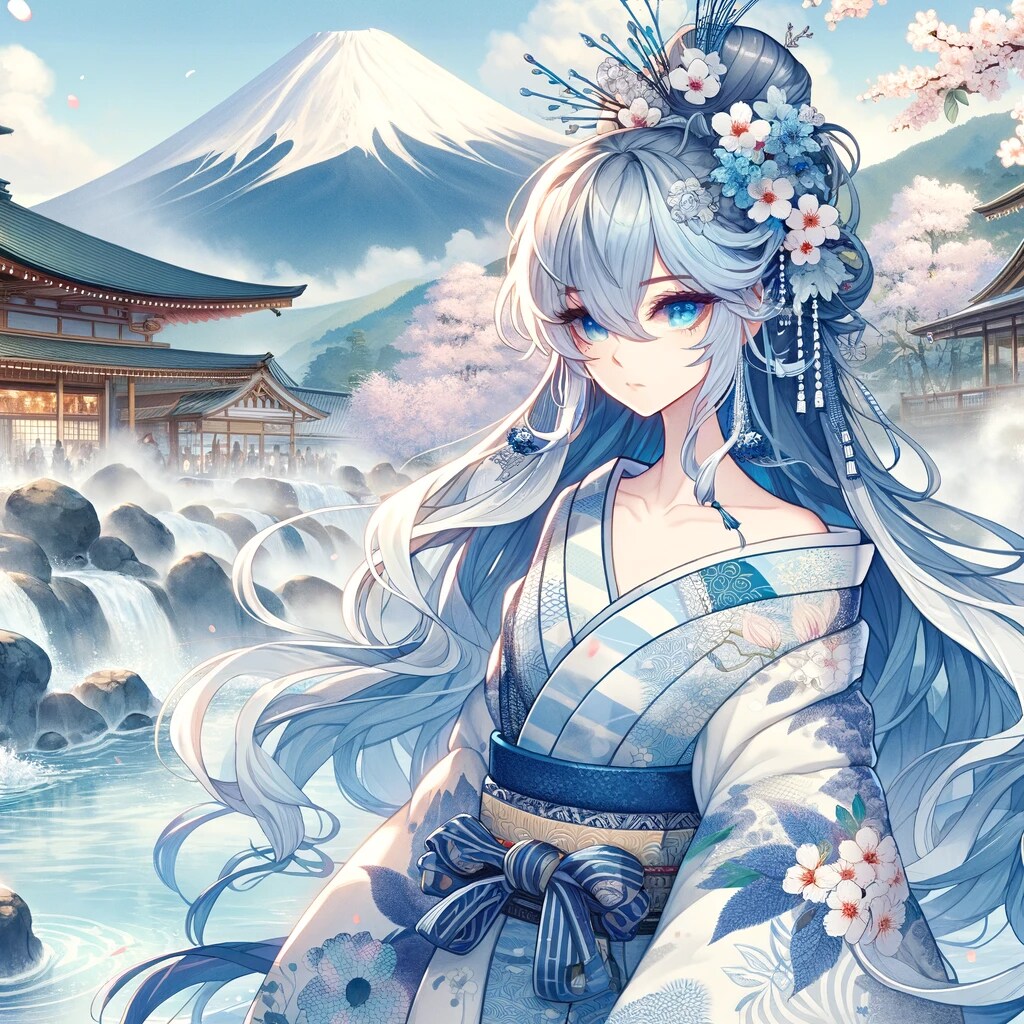 富士山と温泉と美女