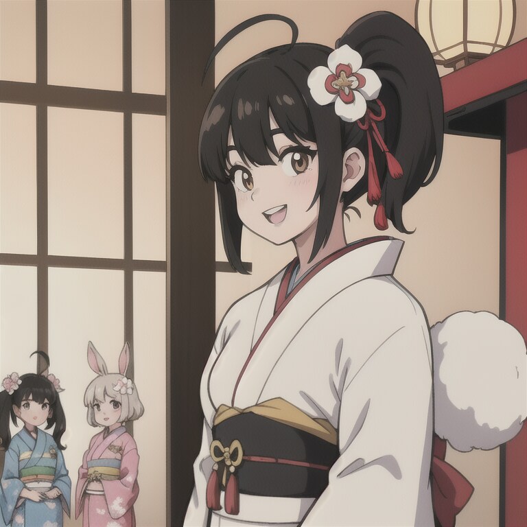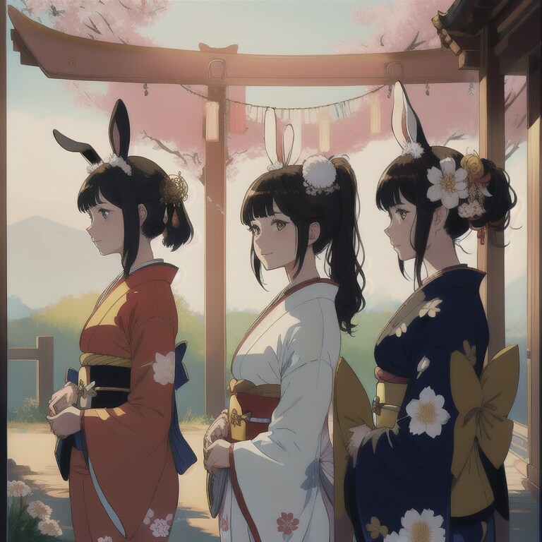 画像生成でアニメ風AI技術で日本の和装美女を作りました。