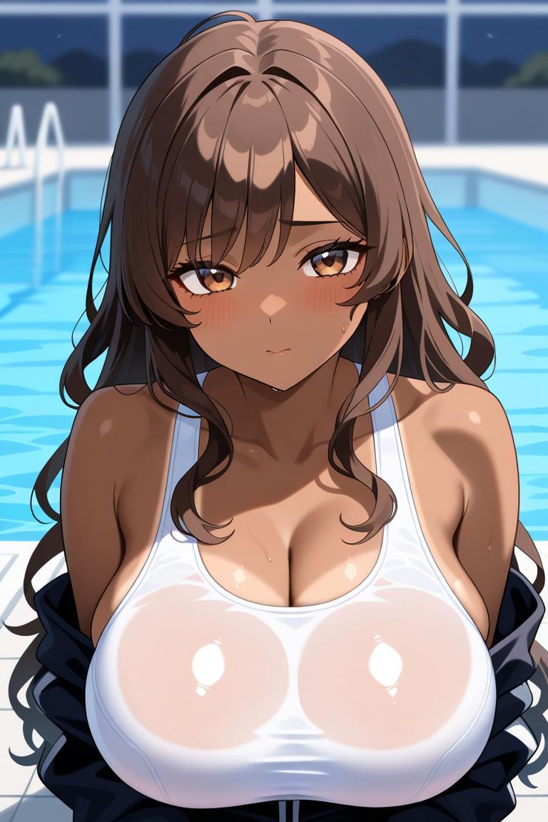 うちの子 茶髪のお姉さん 日焼け競泳水着