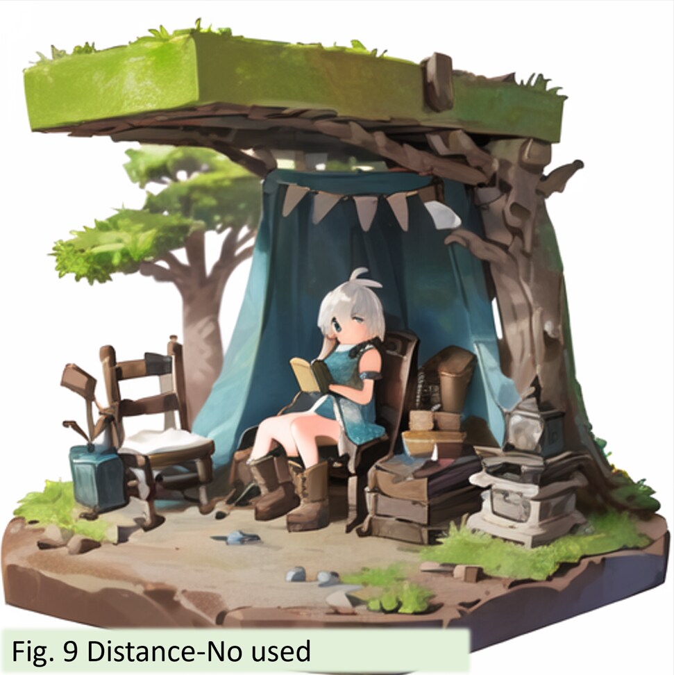 Distance: 重みが1.5の場合、草屋根の出現率が低下し、視点の距離に影響を与えます。推奨重み:1〜1.5。Fig. 9&10を参照してください(512╳512)