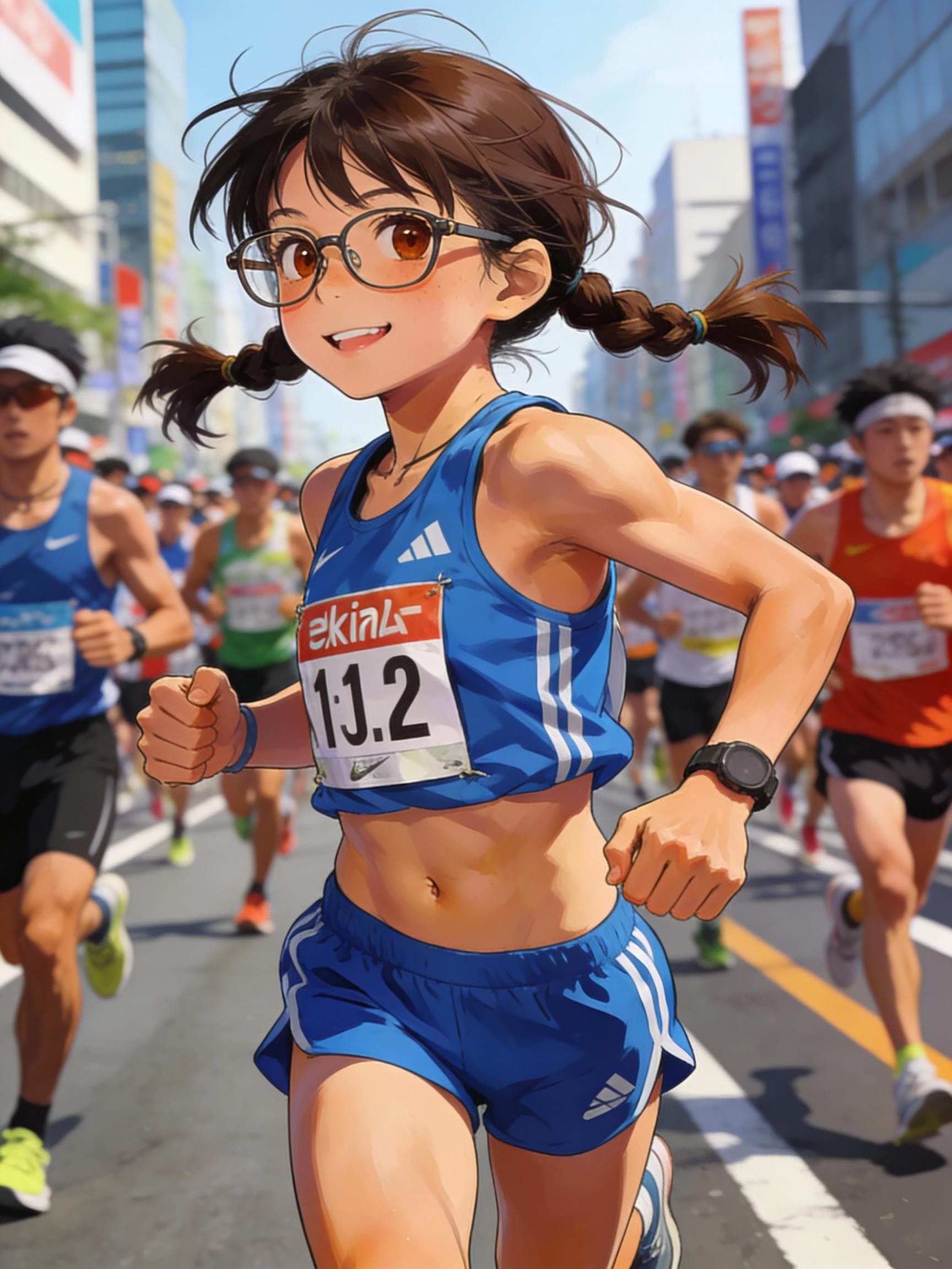 プロンプトの反応具合がとてもいいというのが第一印象ですね。特に他のモデルではなかなかマラソン大会っぽくならなかったさきちゃんのはかなりいいですね。イラスト調さきちゃんと背景の人物に画風がやや違ってしまいますが。
