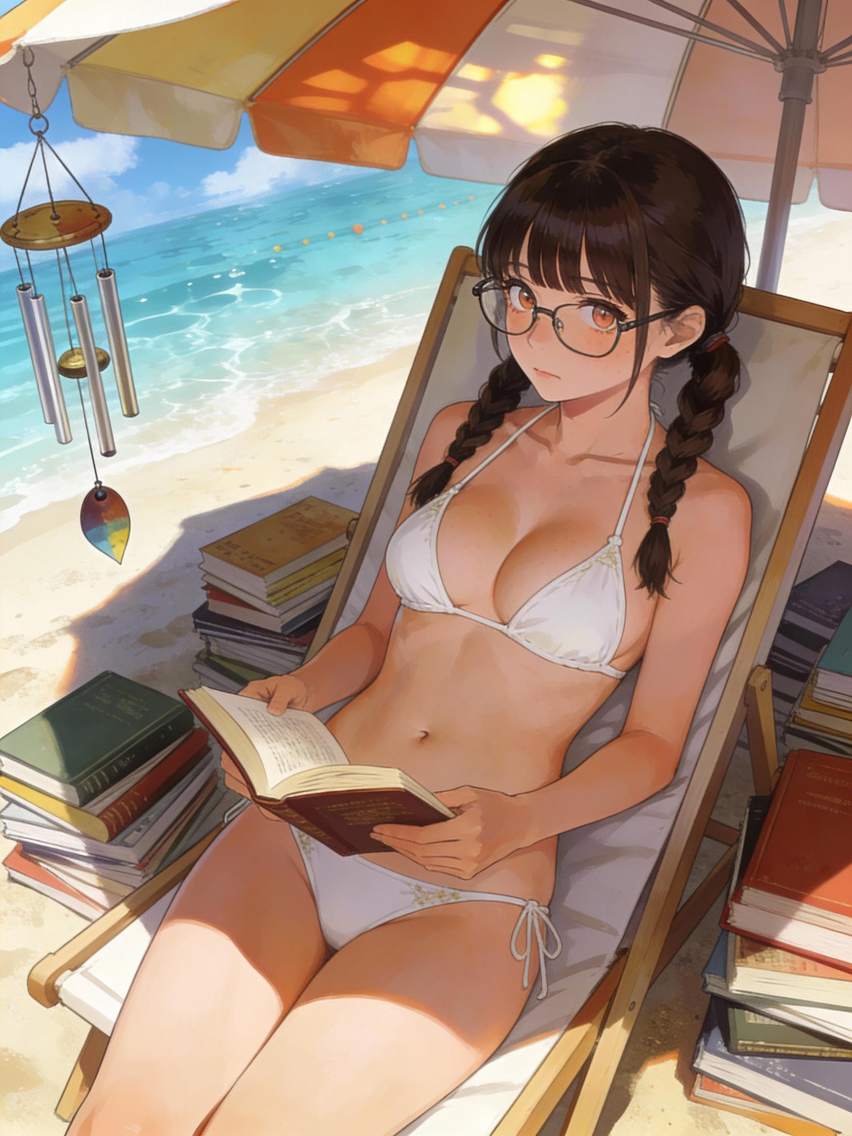2枚目と10枚目はできるだけプロンプトをスリムにして作った純粋な眼鏡三つ編みっ娘になります。クオリティプロンプトは同じなんですがこれまでのSD・SDXL系モデルと同じように高精細な子が出てきますね。