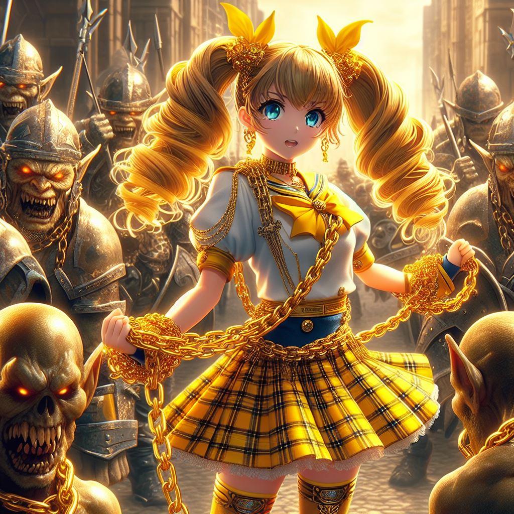 黄金のチェーンでゴブリンたちを捕縛し制圧、やがてゴブリン軍を従えるようになる。