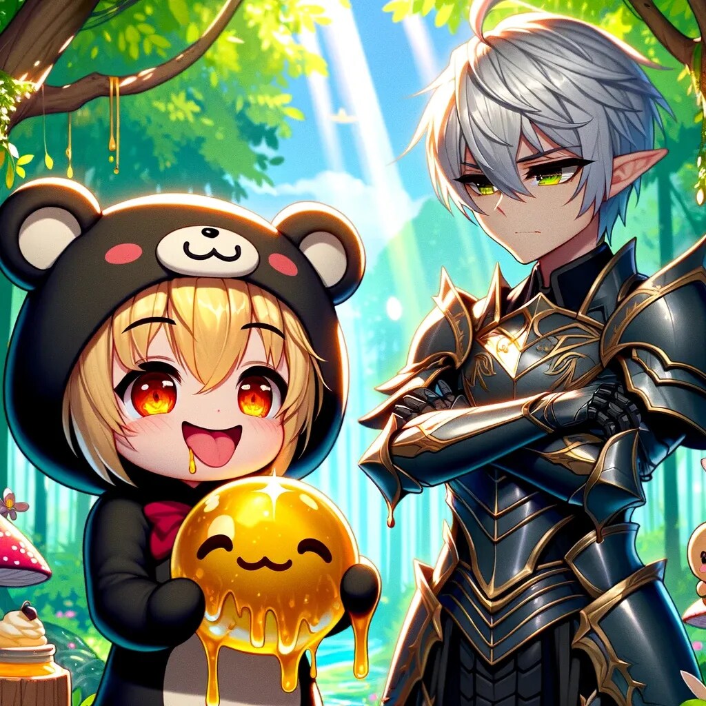 背景の森林も、温かみと神秘的な雰囲気を感じさせます。😊🐻✨