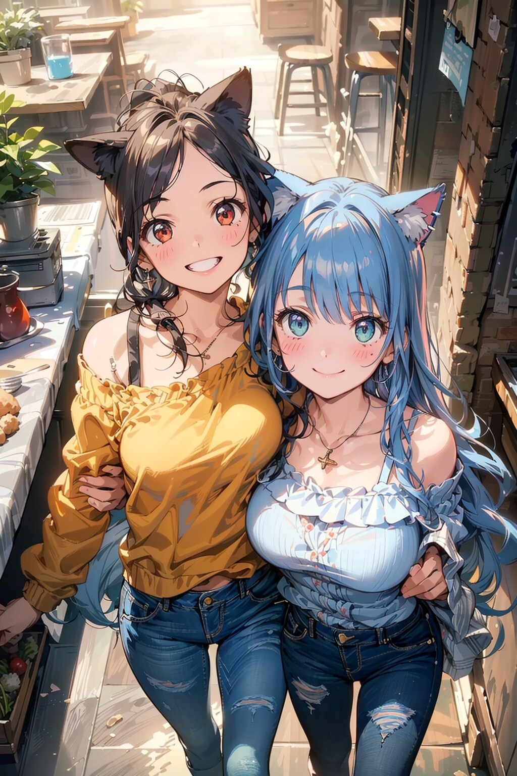 今回は、そんなえなえなさんとひまりちゃんへのリスペクトを込めて、懐かしのコラボ作品を、最近のえなえなさんの作品に見られるMIRAGE→TOPAZのi2iで再現してみた😉さすがに猫耳同士だと二人同時召喚がしやすい✨あの頃はまだ私に二人同時召喚の技術が無かったので、遅ればせながら、あの時の御礼として贈りたい🎁