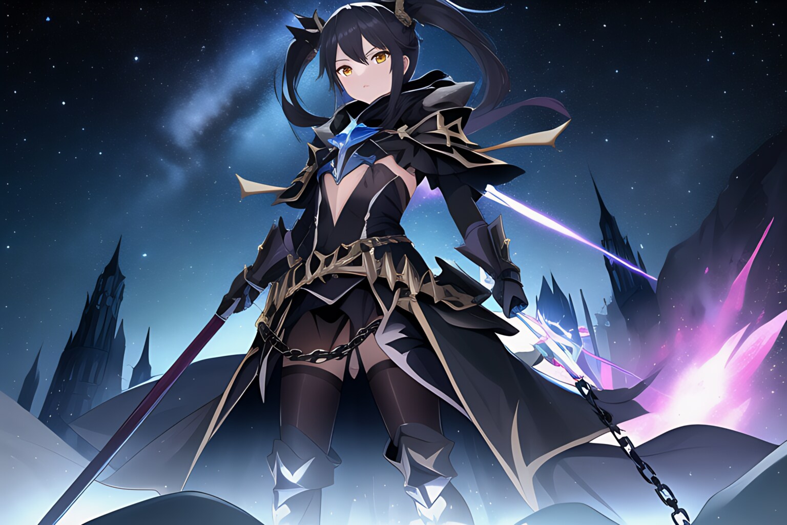『激昂する 黒黄金の氷よ。星の嘆きは天より高く 鳴動するは 天空の怨鎖と知れ<スパーク・カッター>』