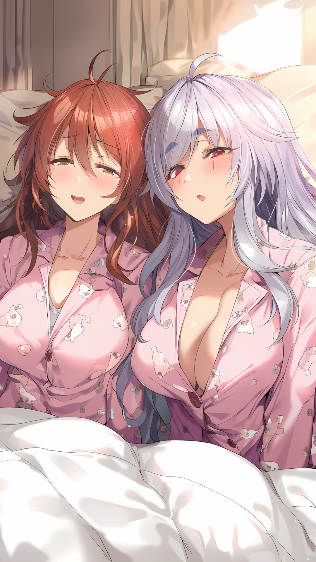 朝の柔らかな光がカーテン越しに差し込む中、ノノカちゃんとミレナさん、まだ夢の中…😴💕
