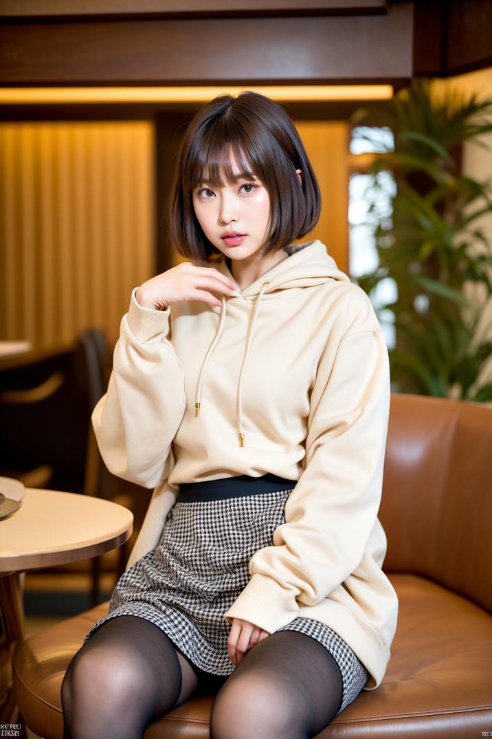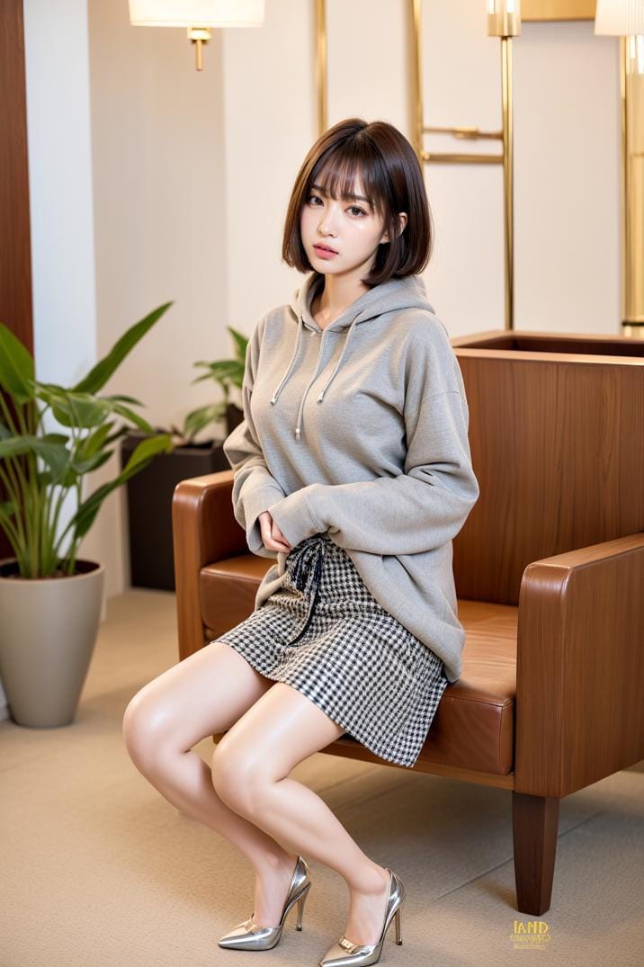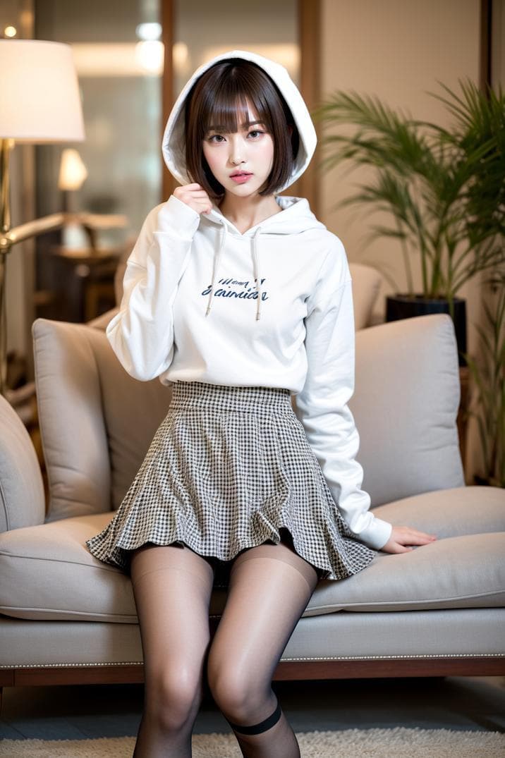 ボブカット&フーディ&千鳥柄スカート&美脚という最強のバランス1 - The best balance of bob cut, hoodie, houndstooth pattern skirt, a