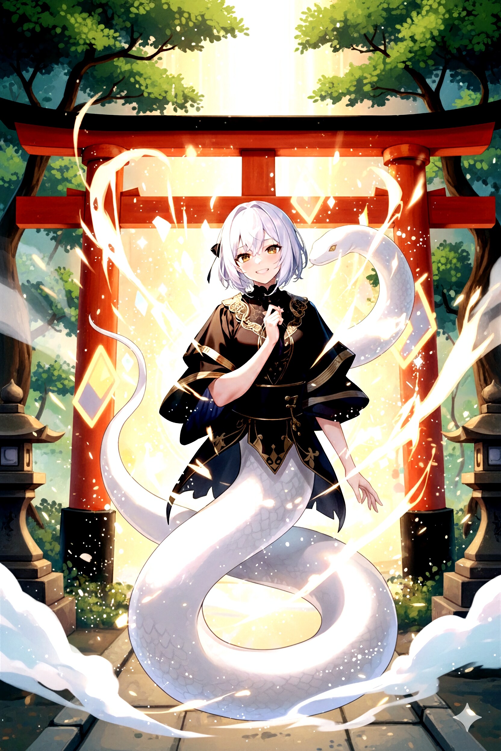 白蛇神社の神様(ヘビ神様)はその姿を見た人の身体に巻き付く事により幸せが訪れると言われている。