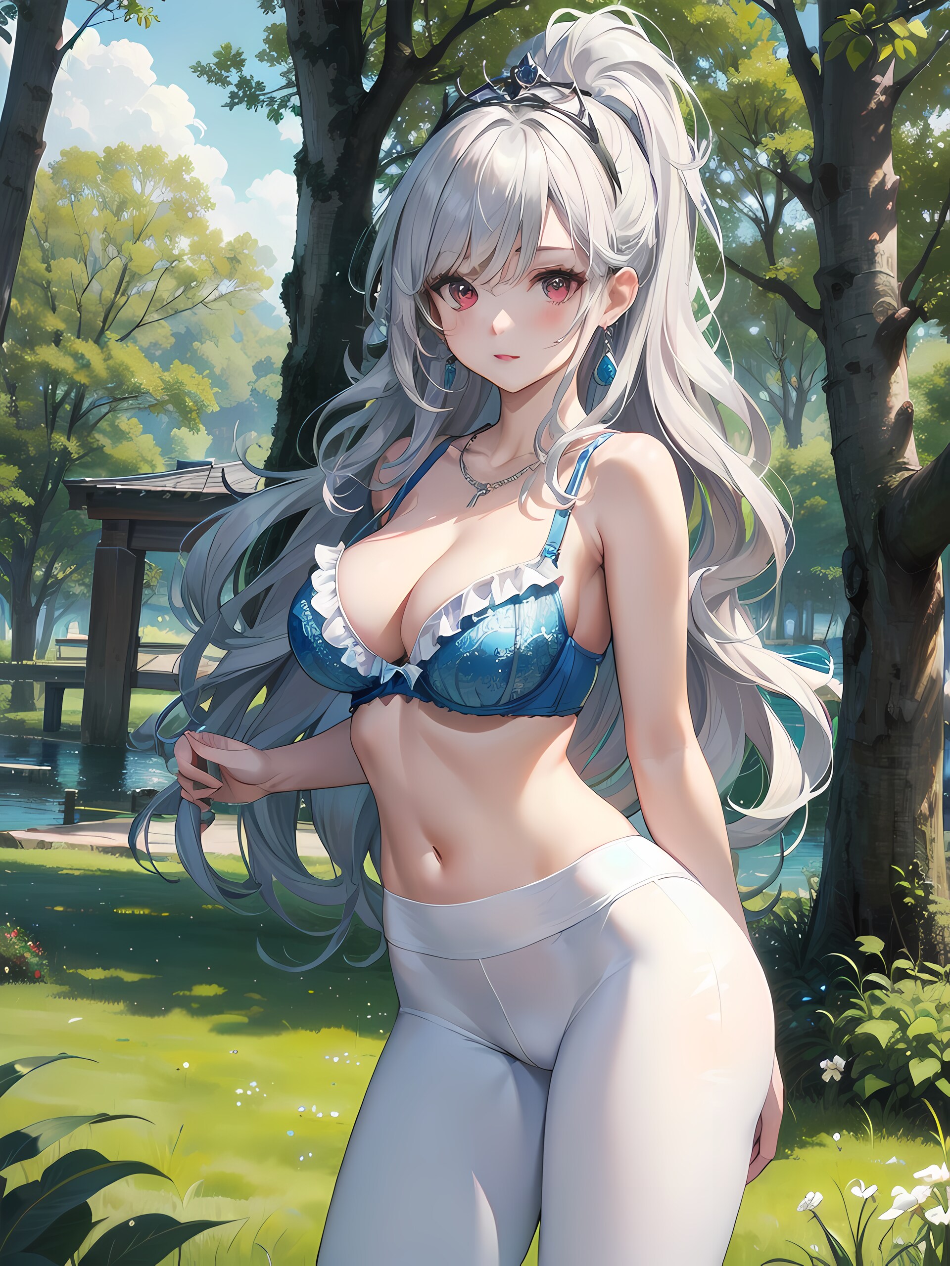 レギンス姿の銀髪赤目美少女