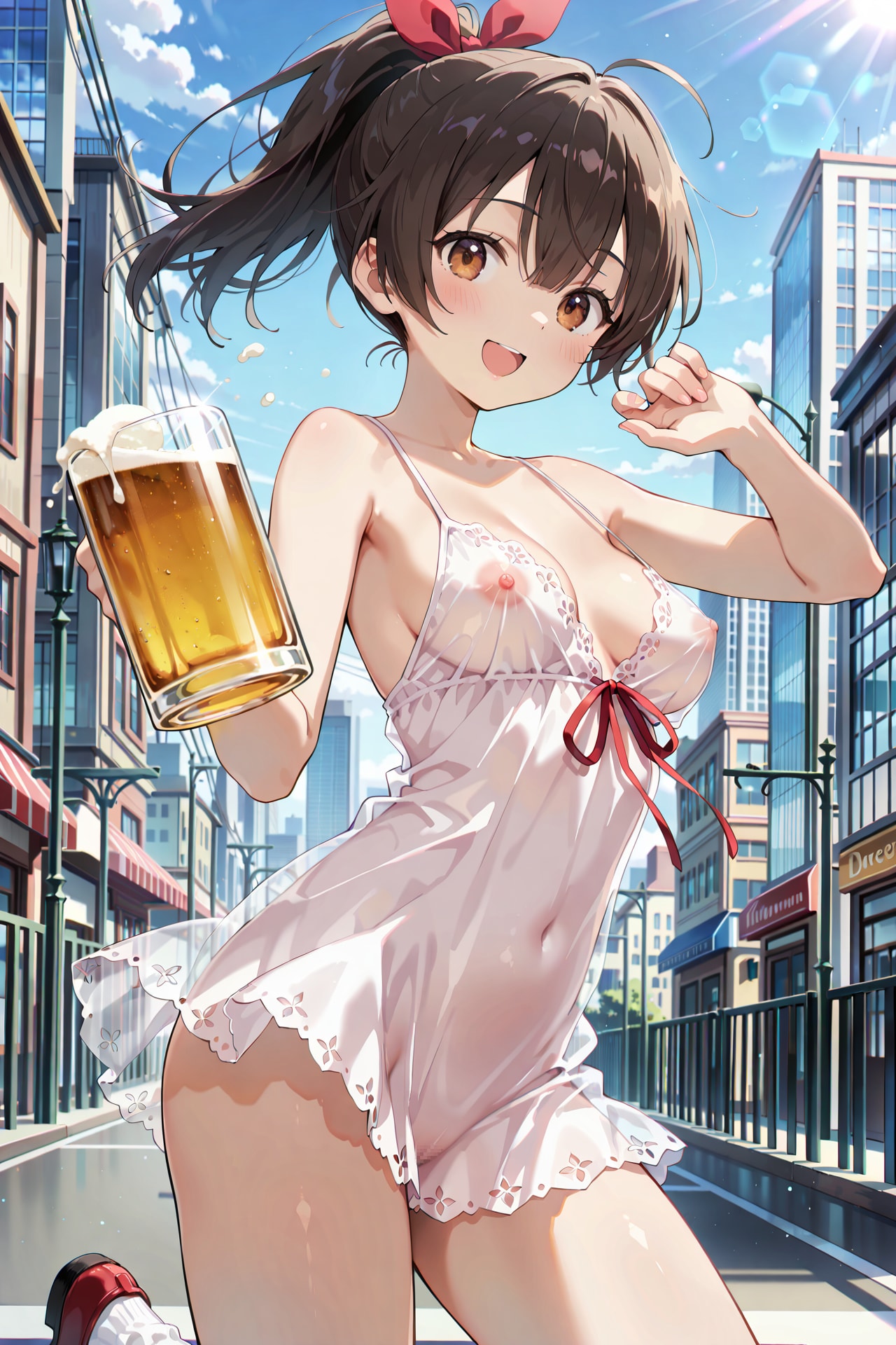 ランジェリー姿を愛でる(撮影する)も良し、小道具(?)としてのキンキンに冷えているビールを一緒に飲むのも良しです!