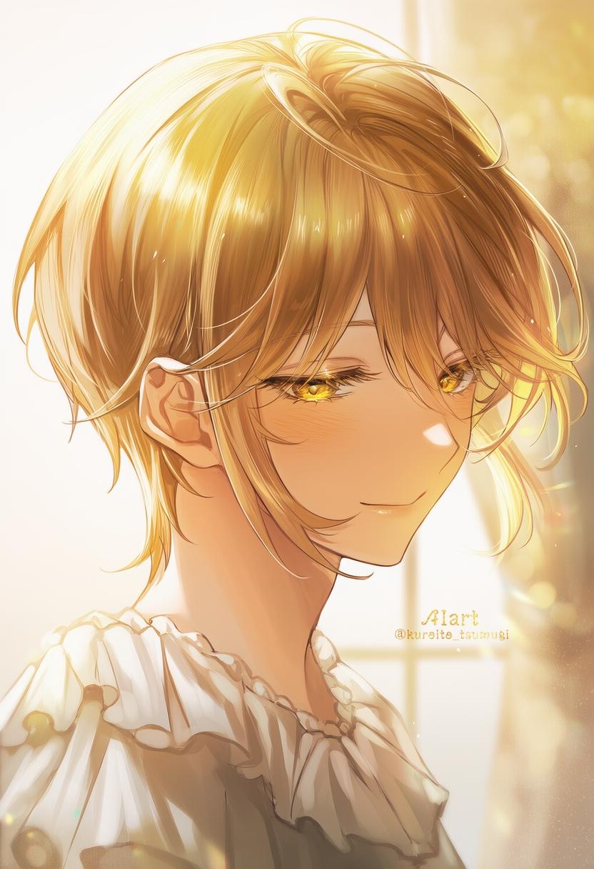 「half closed eyes」て目を細めて笑みを浮かべる表情にしています