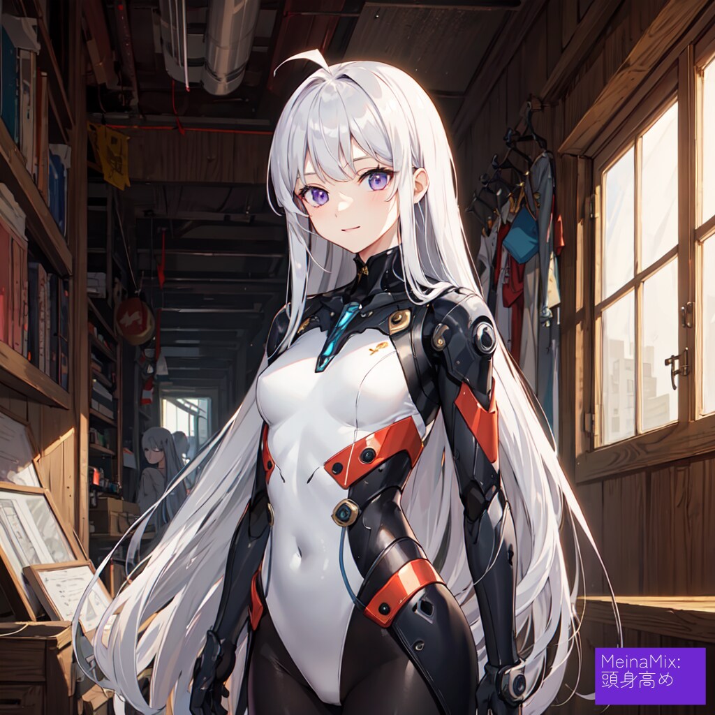 2枚目以降のおまけはパイロットスーツの色違いと他のモデルでも試したものです。銀髪ロングストレート設定だったのでstraight hair:2.0と強めに掛けましたが、モデルによって効き具合はさまざまでした。