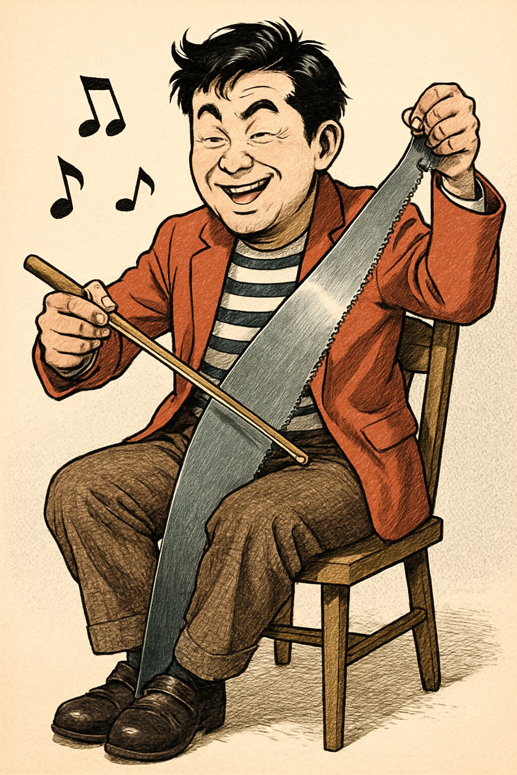十八番ネタに西洋ノコギリによる演奏というのがありました。