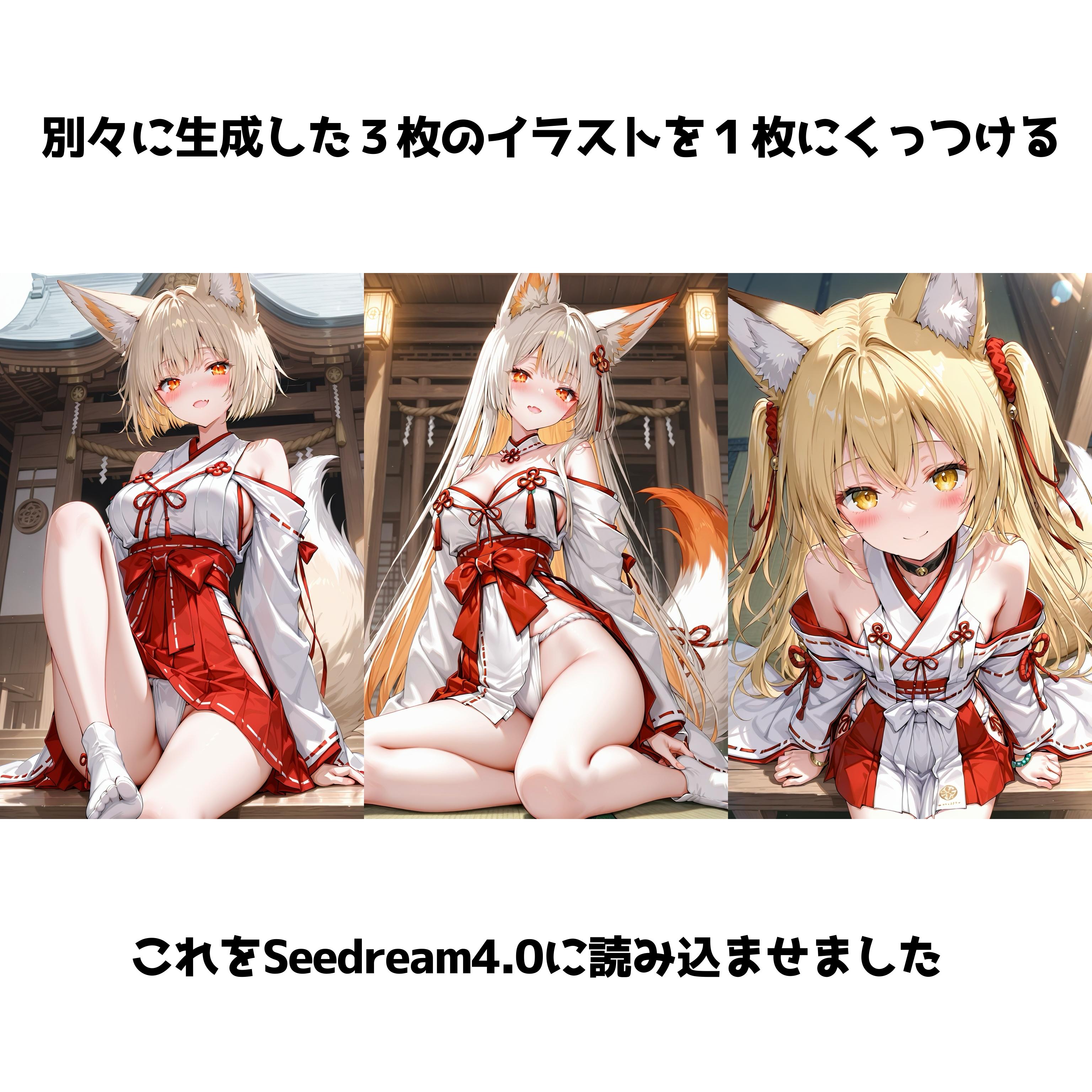 1枚目:完成版(3-5枚目の画像を結合して、ちちぷいのSeedreamにアップロード。nano bananaで微修正。)