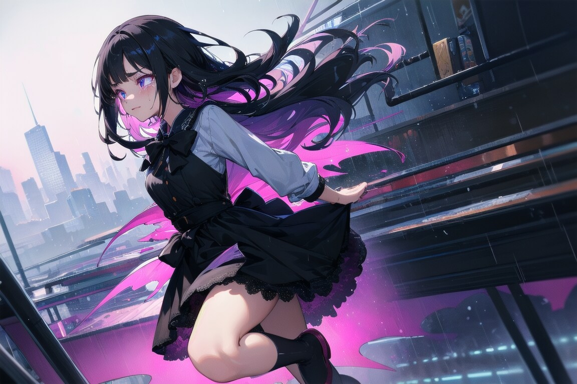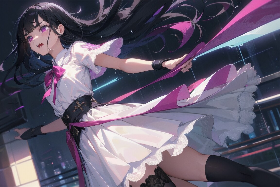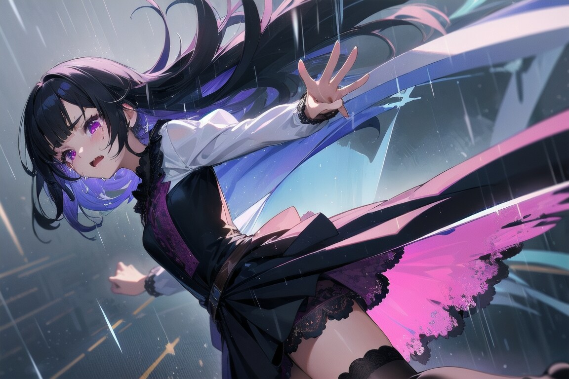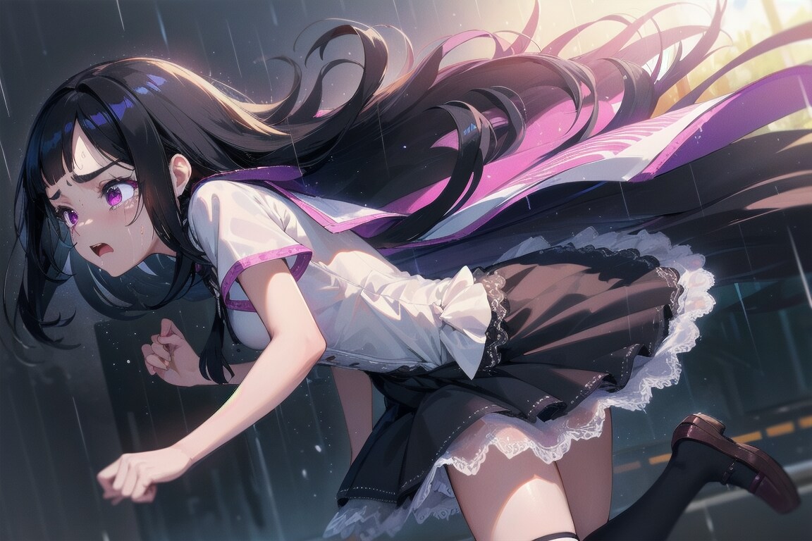 最初は立ちポーズで生成していたんですが「これもいいけど、何かもうひと押し欲しい…!」と、この曲をまた聴いた時、「走って」というフレーズがあったので、走らせてみた結果、このイラストが生成されました。色々味わい深いイラストが見れて、満足しました…!!