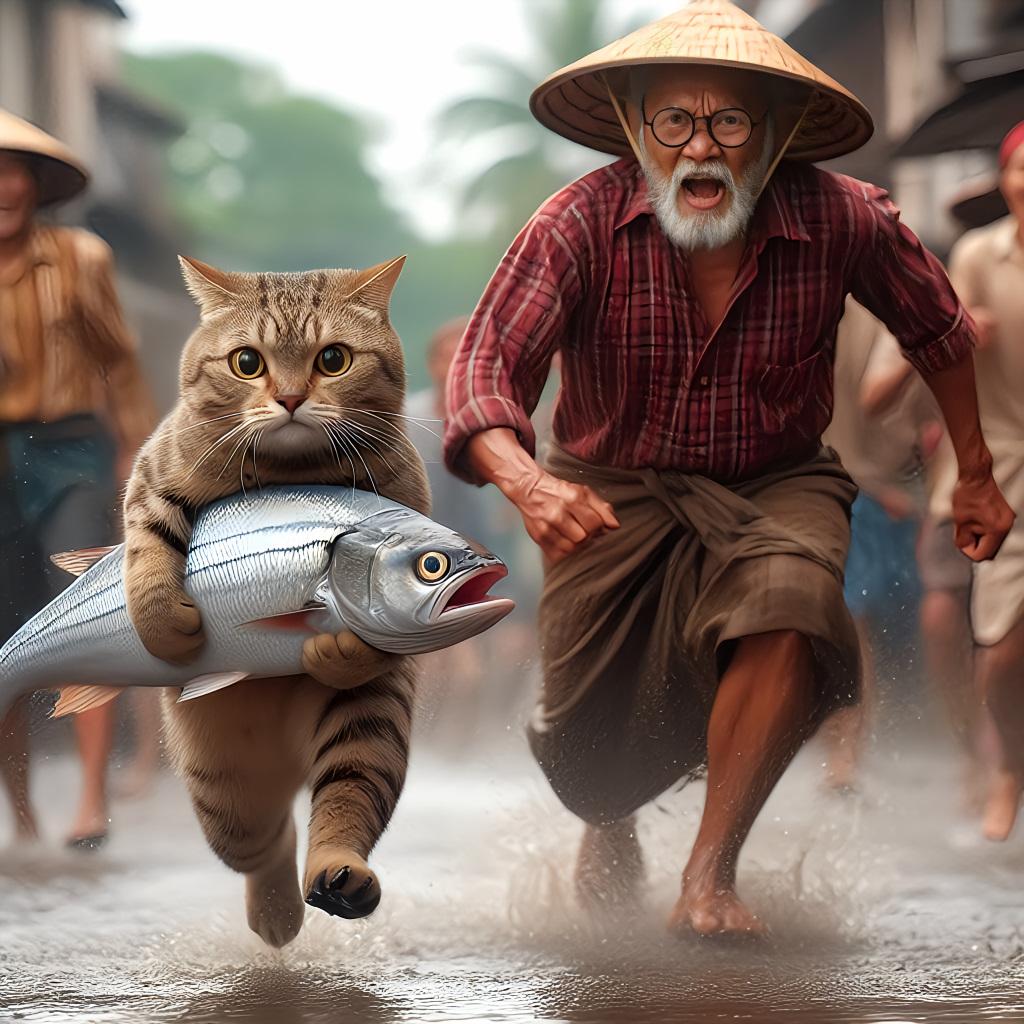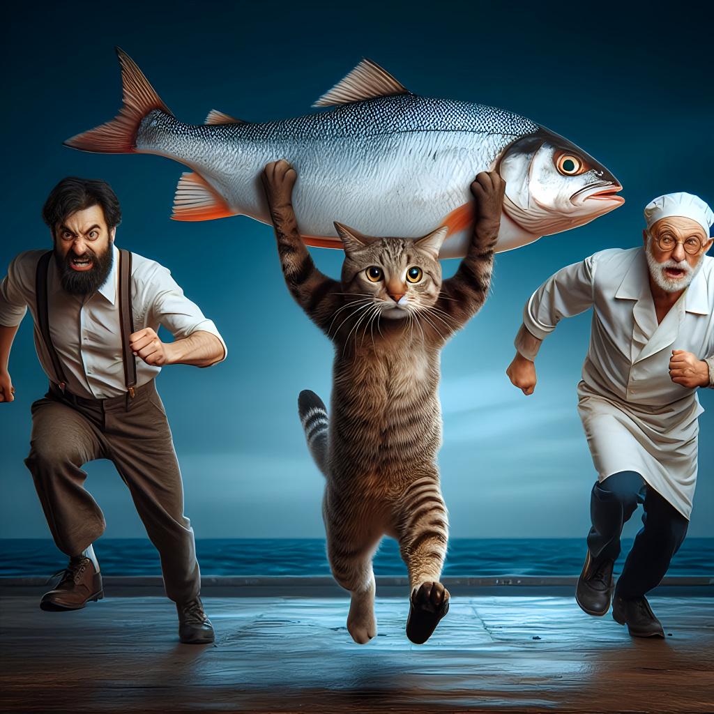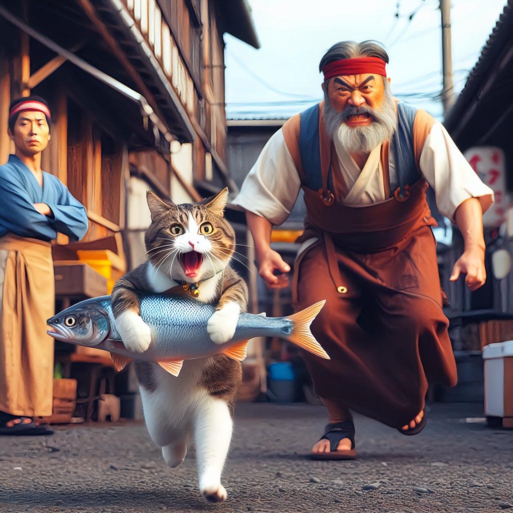 お魚抱えた~🎶ドラ猫~🎶追いかけて~🎶