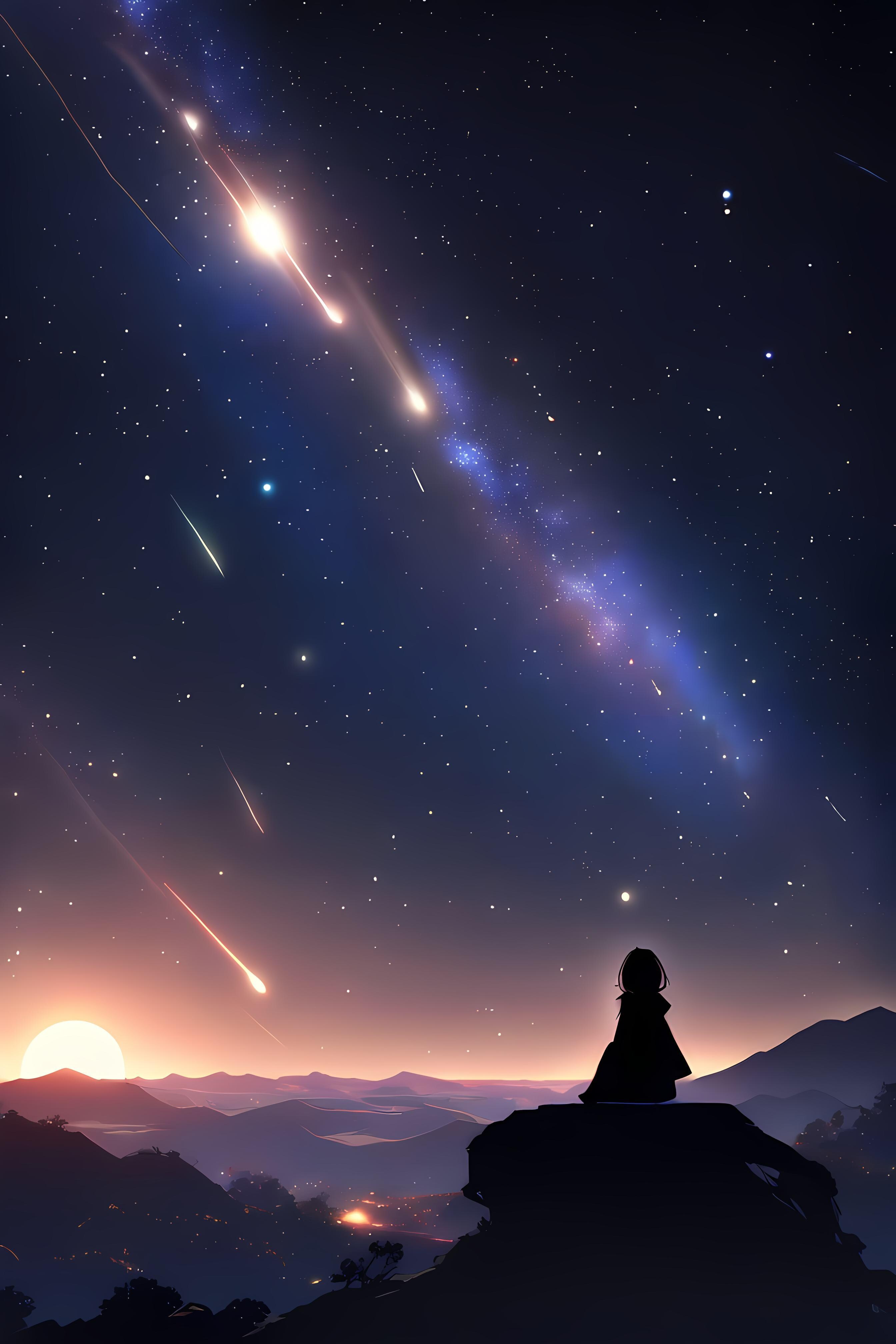 流れ星が流れる風景。