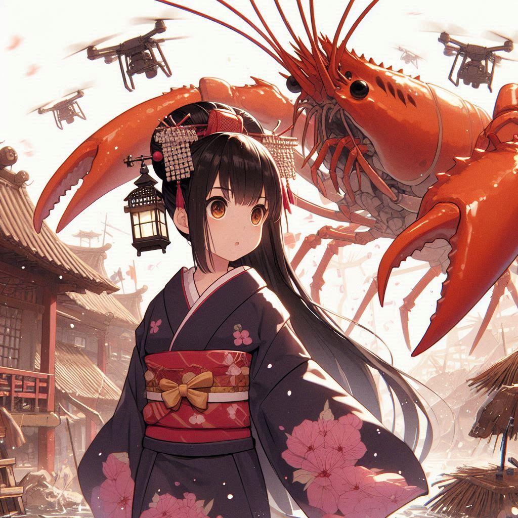 石灯籠ちゃん「きゃぁ?! 聞いていたサイズよりとても大きなエビですわ💦」