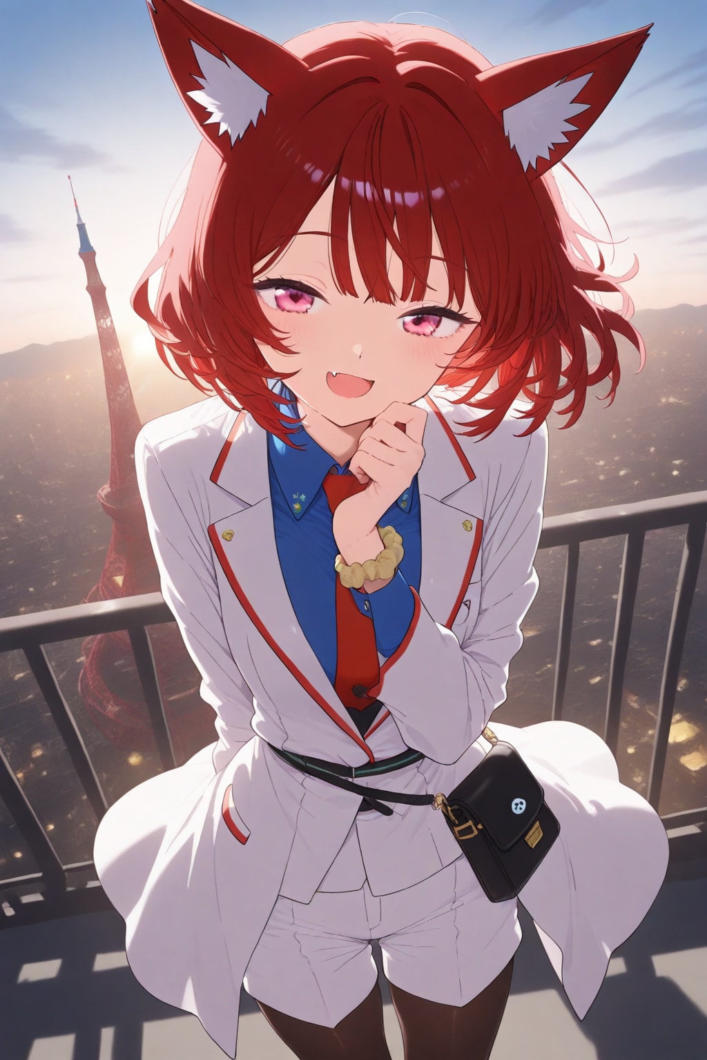 1枚目:狐娘カエデ 昼間、背景は東京タワー(Tokyo Tower)を指定
