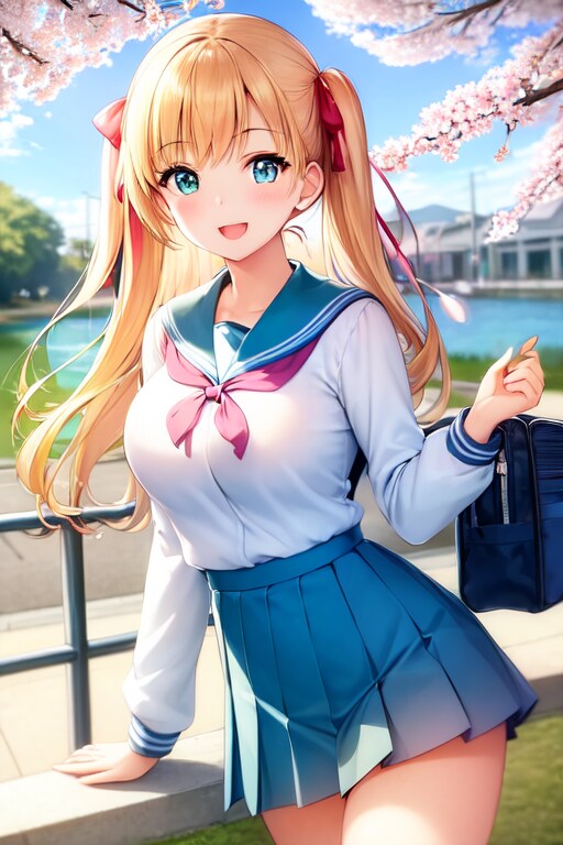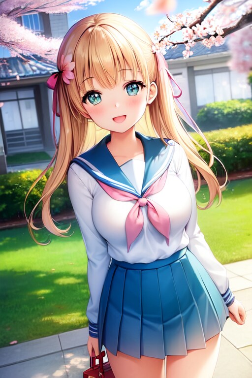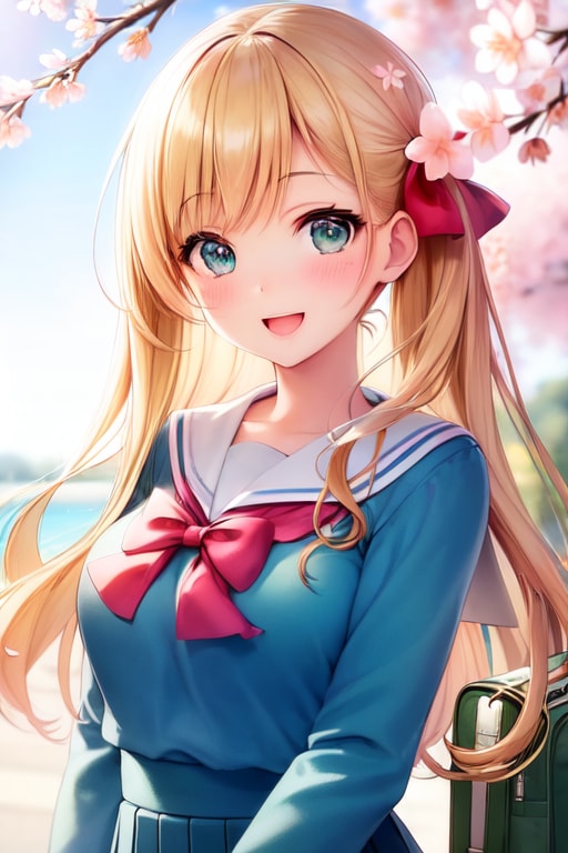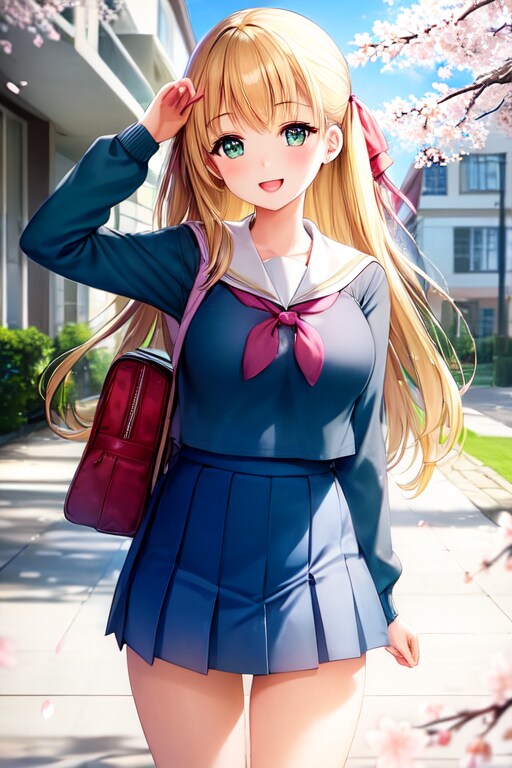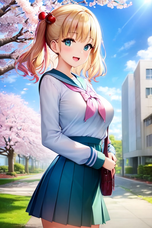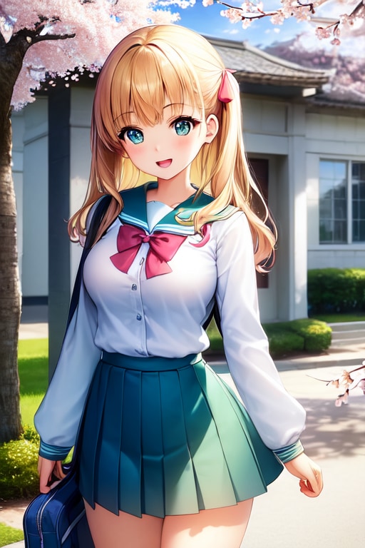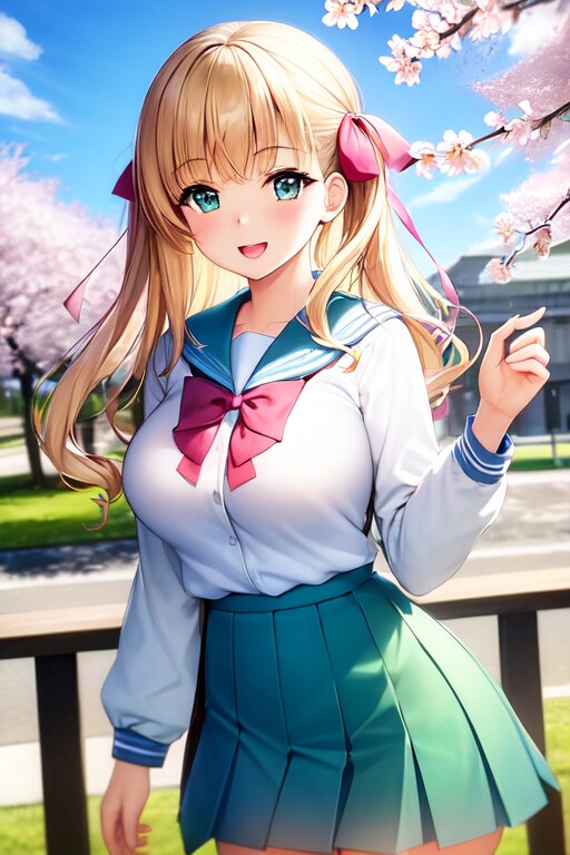 一時期ハマっていた緑セーラー服と桜で生成しました!(*'▽')
