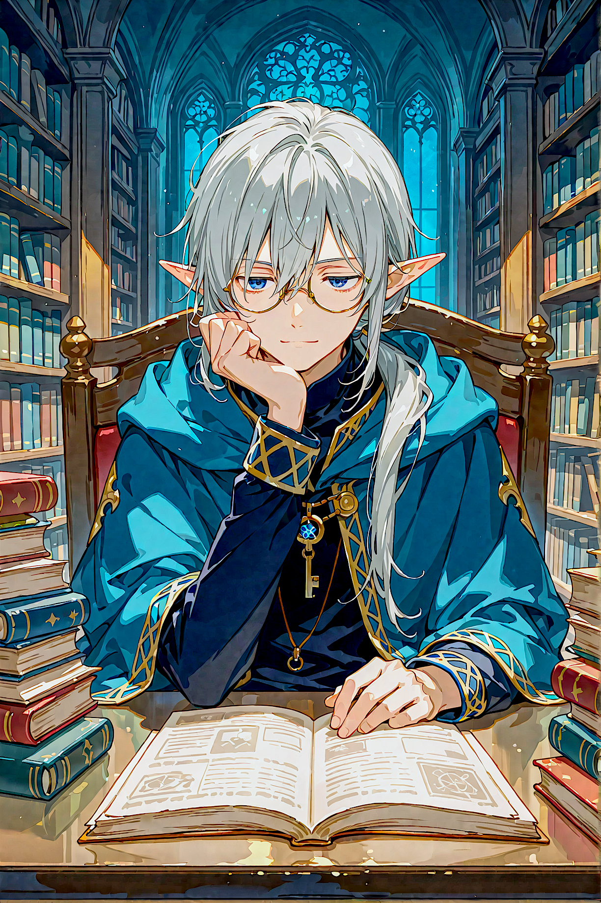 何かを読むのが似合う人物...ということで、ファンタジー世界が舞台の巡礼騎士シリーズより、ジト目知性派陰キャ魔術師のオルウェンさんですぞ(^ω^)