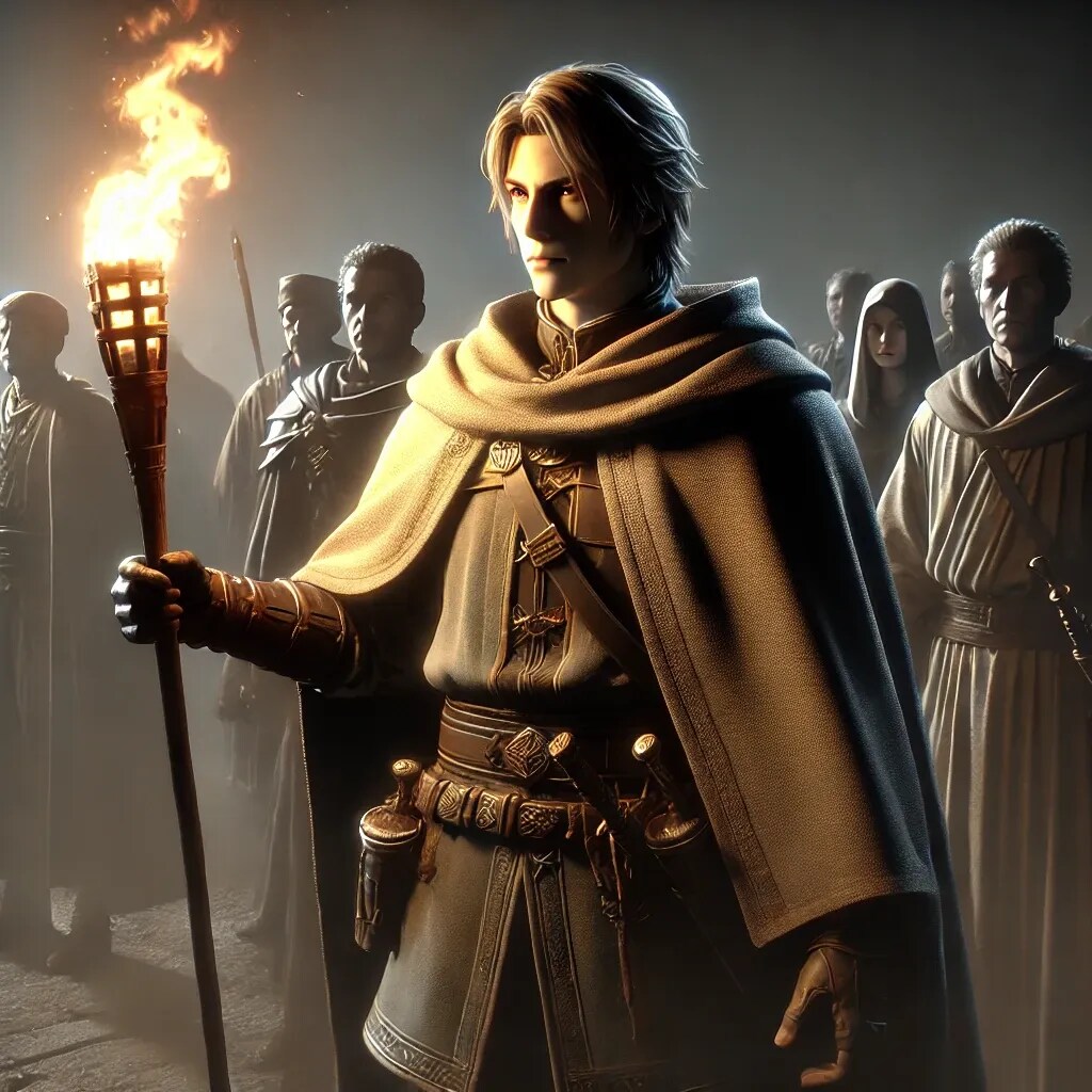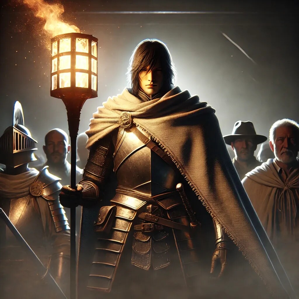 外見としては、軽装ながらも堅固な装備を身に纏い、背には大きな帷が張られているかのようなイメージを持つでしょう。彼の周囲には静寂が漂い、敵に気づかれないような存在感を持っています。彼の眼差しは鋭く、常に全方位に目を光らせています。