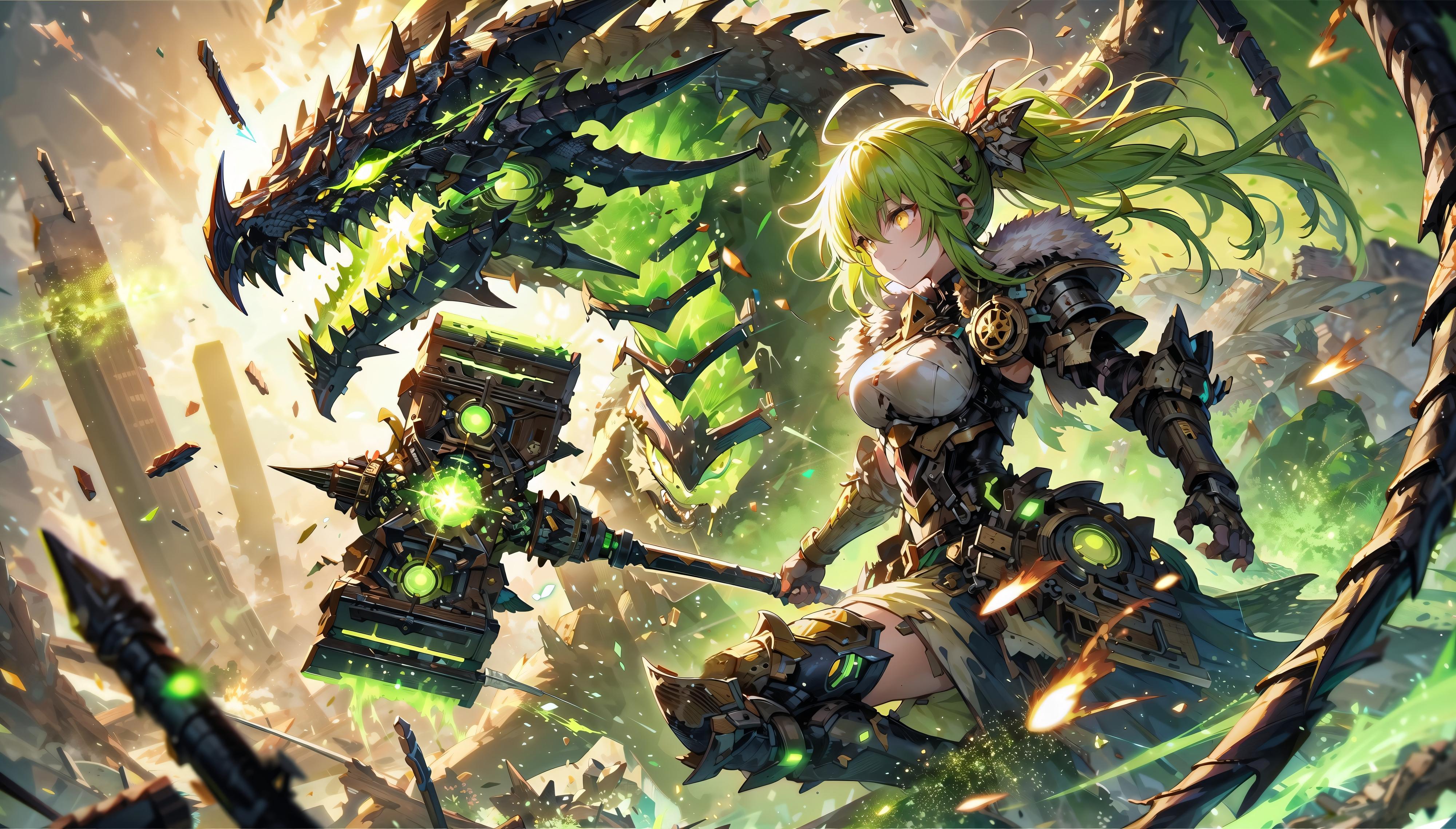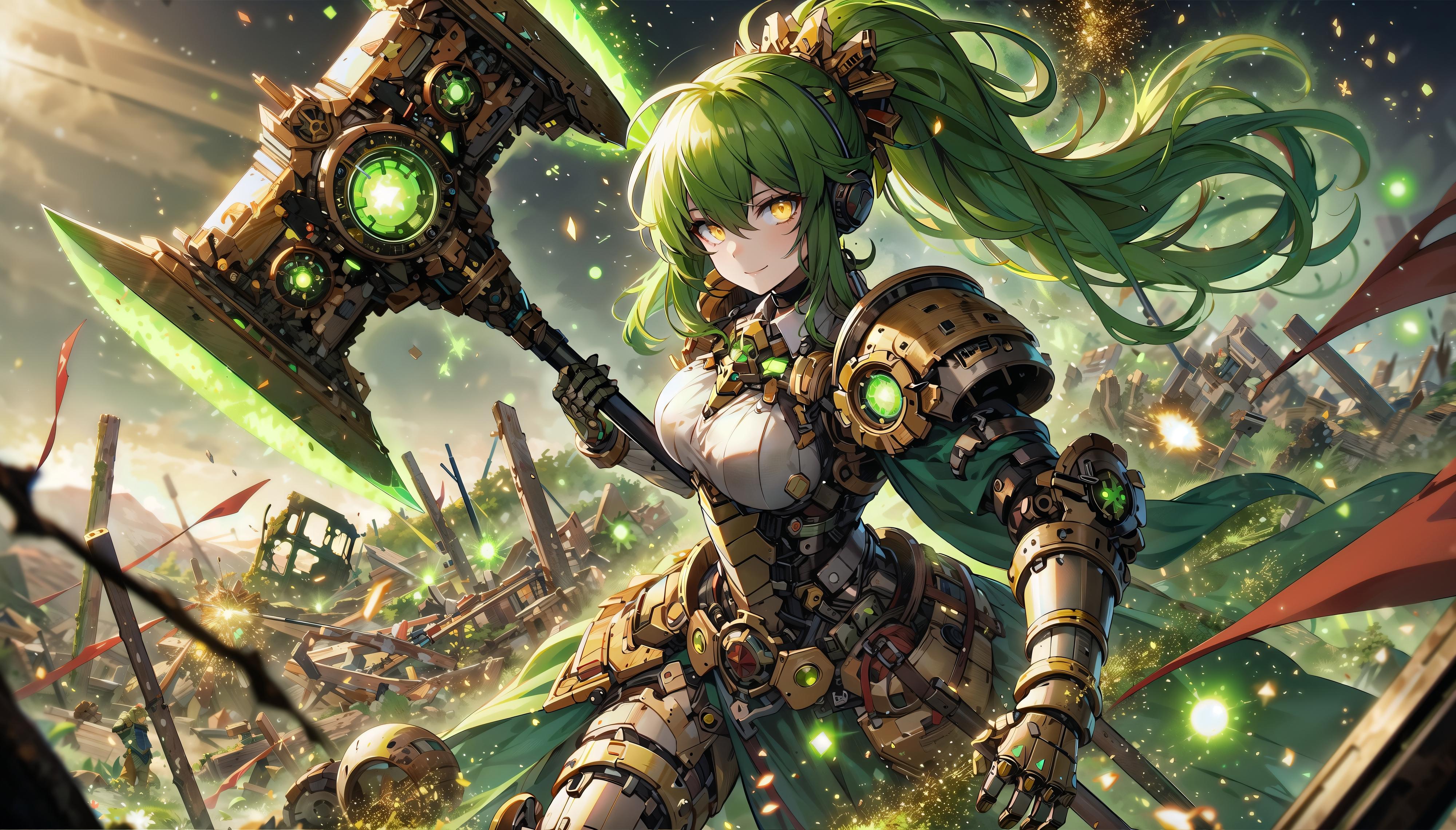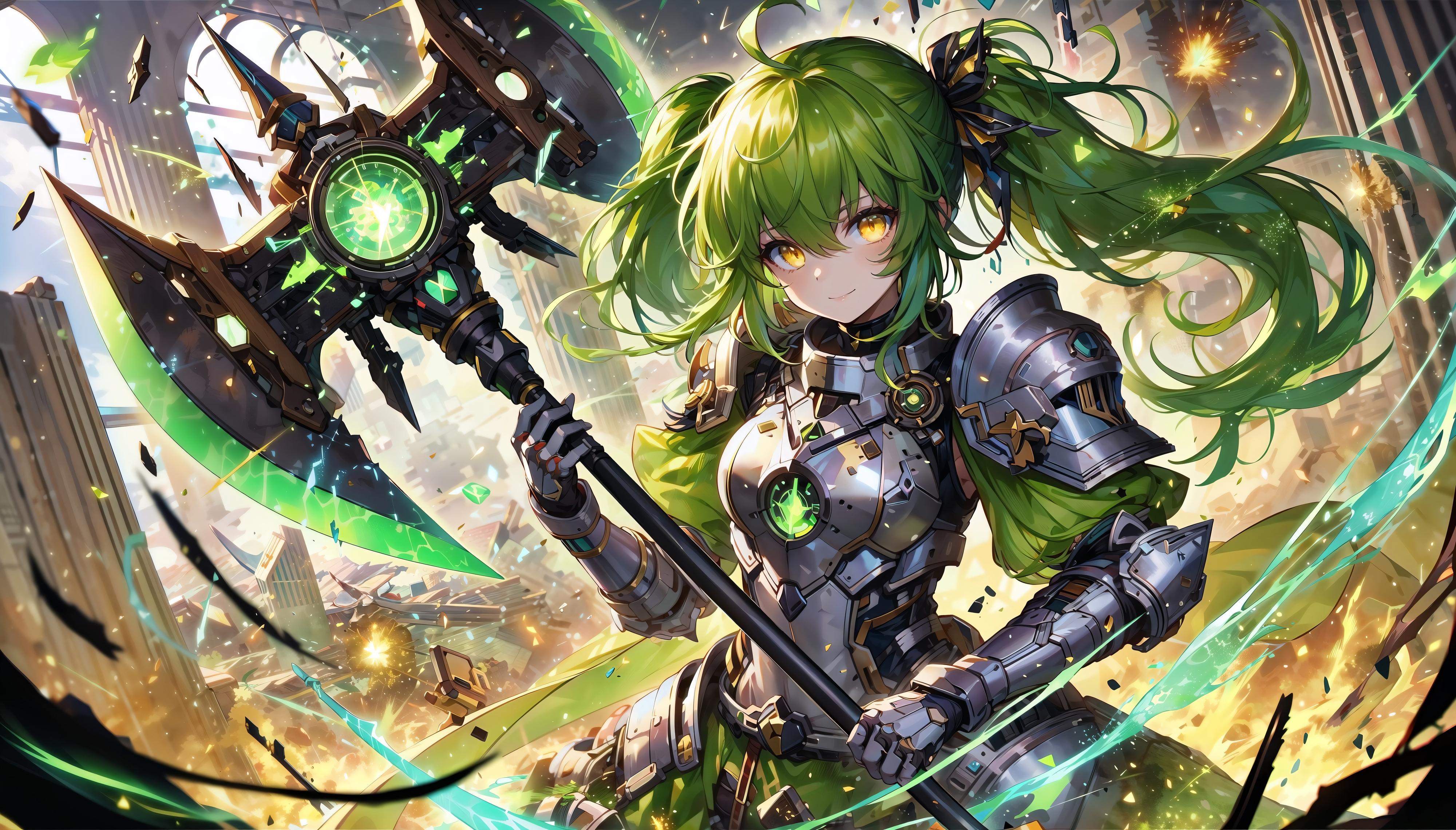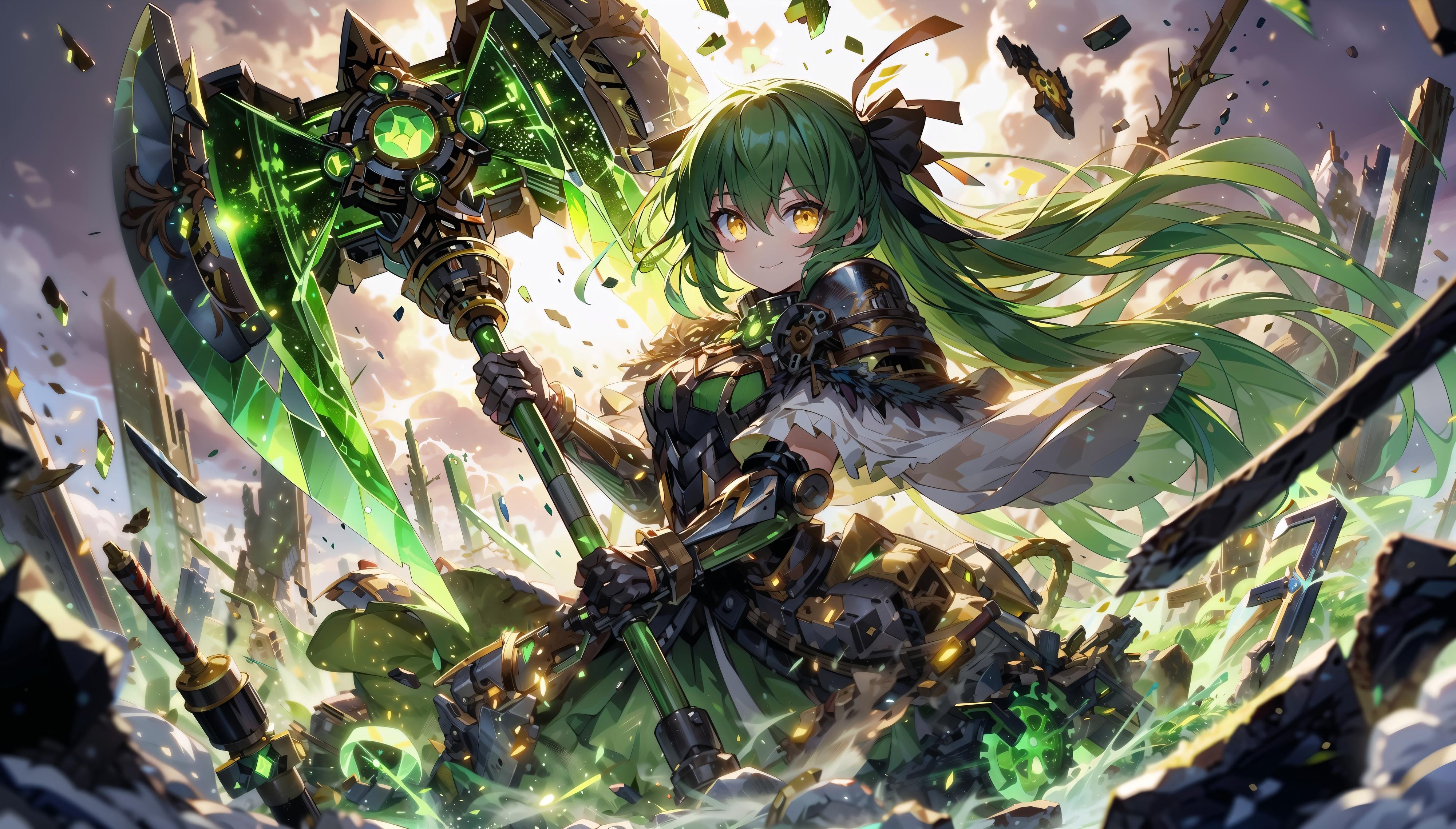 今回はミントちゃんの髪の色に合わせて武器のほうも緑のエフェクトを付けておきました(*'▽')b