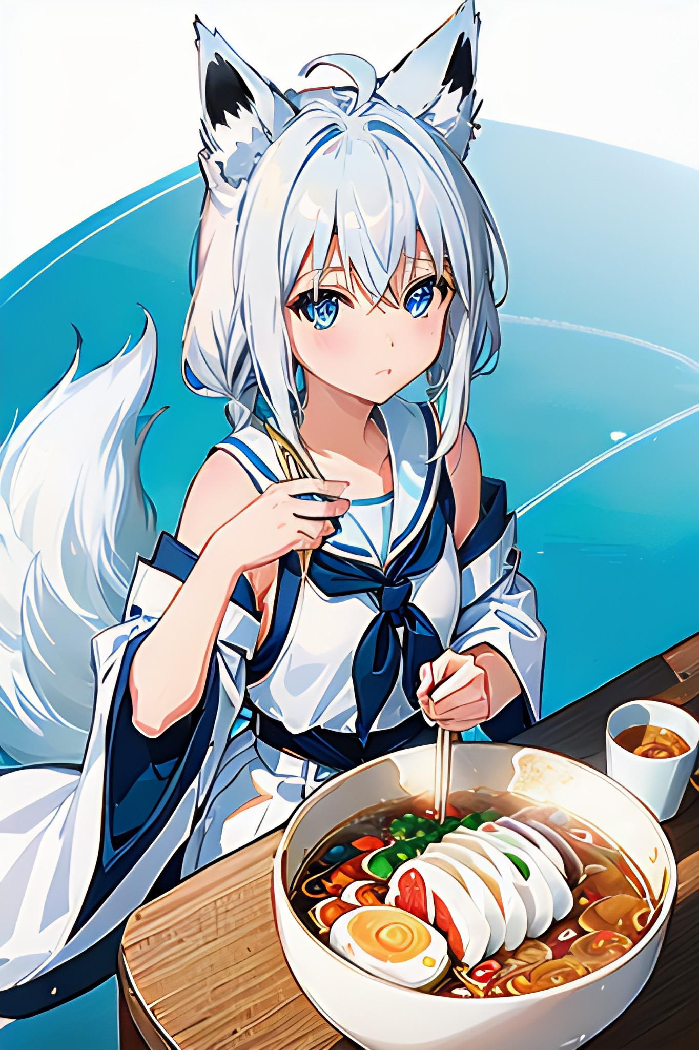 「二次元」モデル。溢れ出るラーメンは圧巻。
