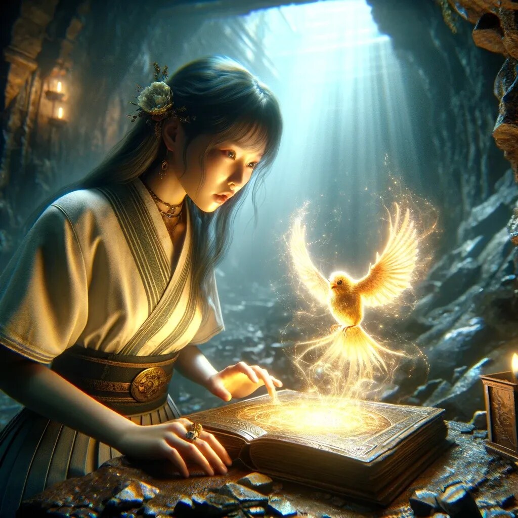 ある日、アリエルは炭鉱の最深部で古代の秘密を発見します。それは、カナリアと人間の魂を繋ぐ古の魔法の儀式に関するものでした。この儀式により、カナリアは一時的に人間の形を取り、過去の記憶を取り戻すことができますが、その代償として再び犠牲になる運命を背負うことになります(3枚目)。