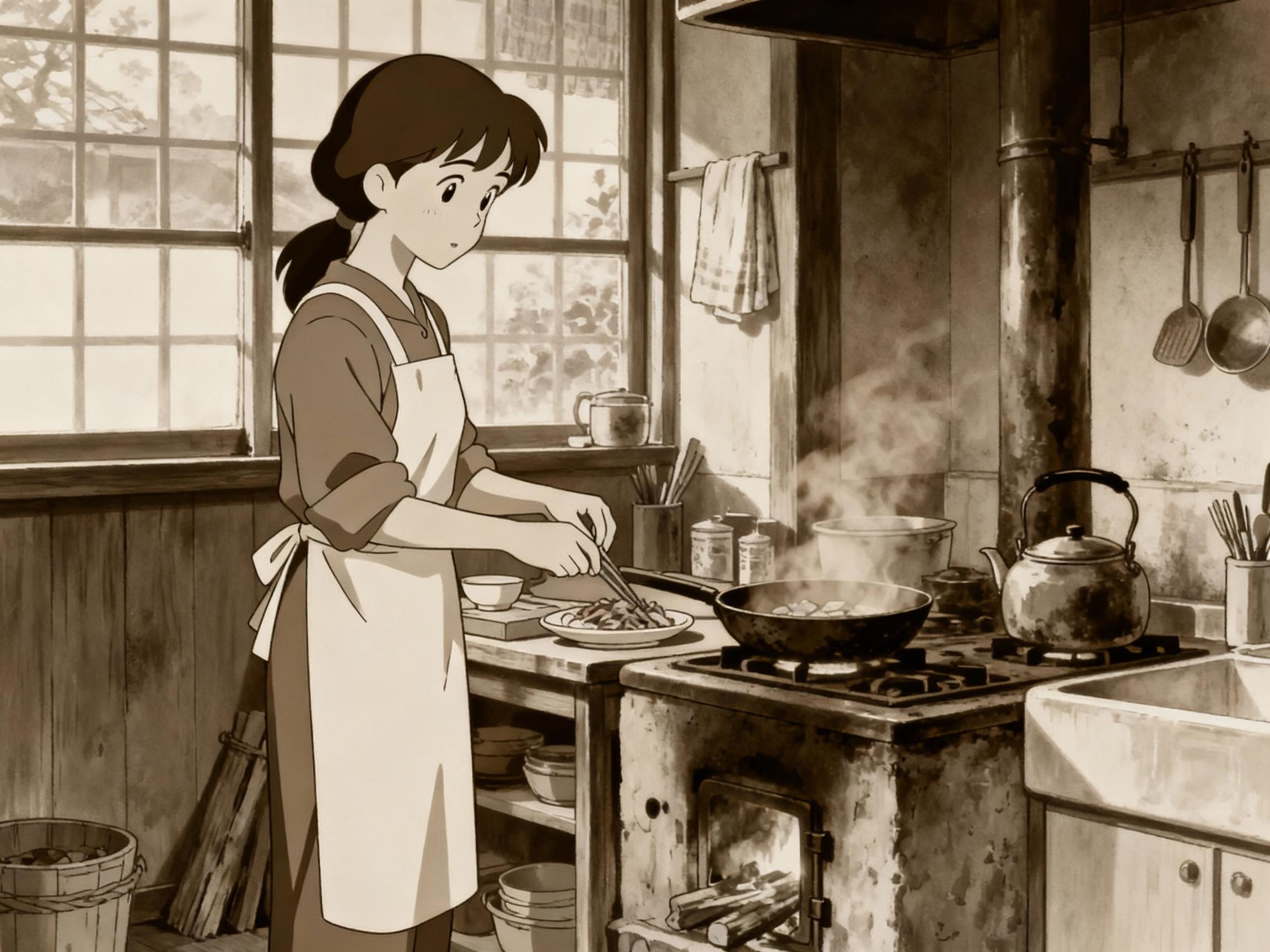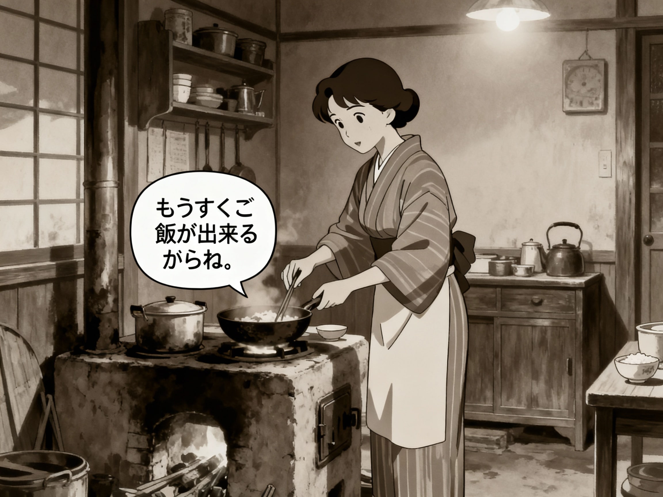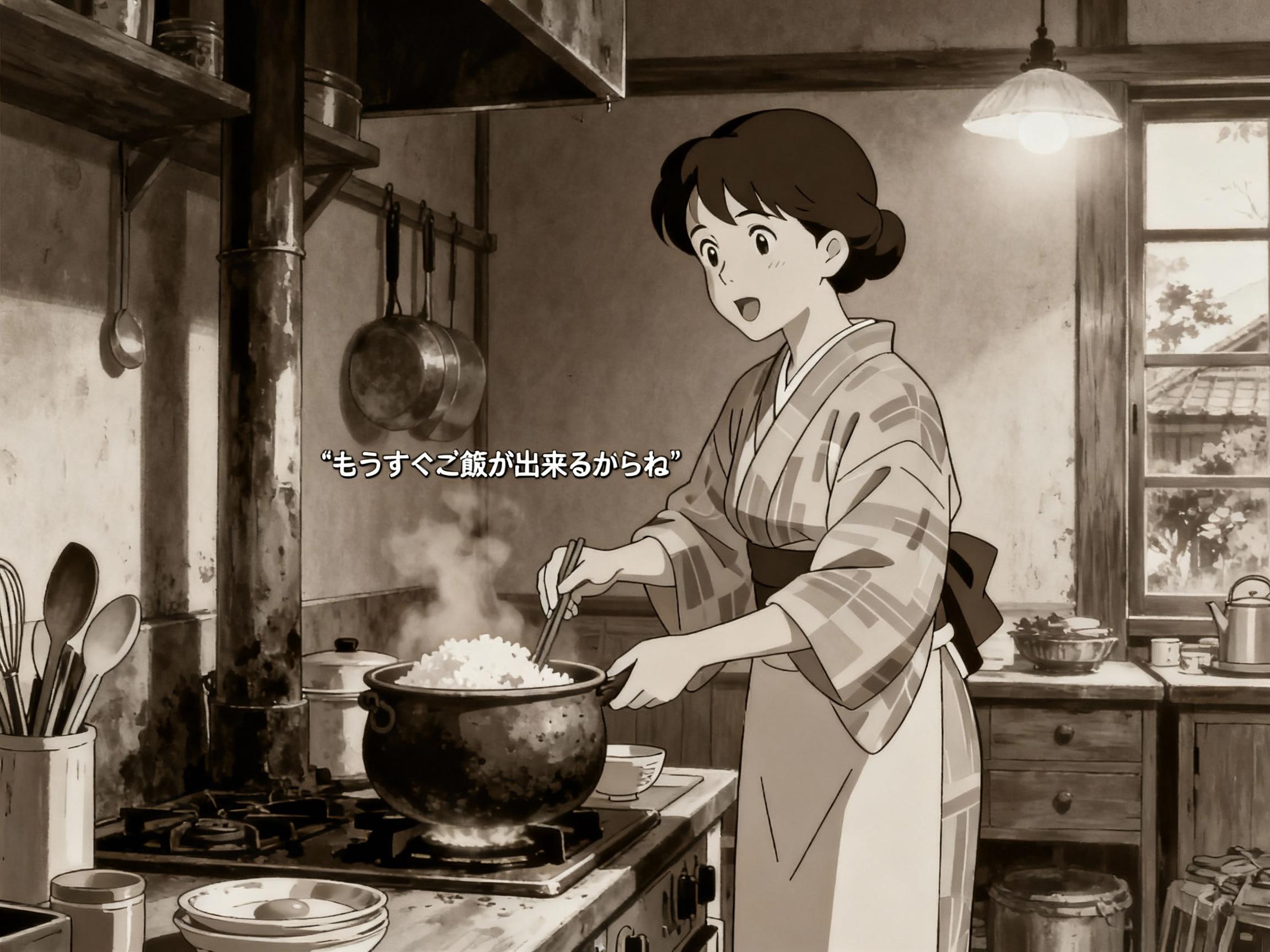 4枚目は"もうすぐご飯が出来るからね"と話している とした場合、これはこれでモノクロ映画じみているから悪くないかも?