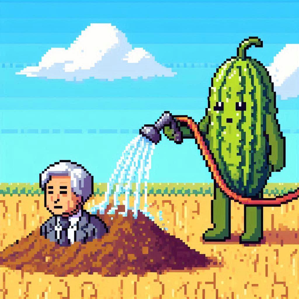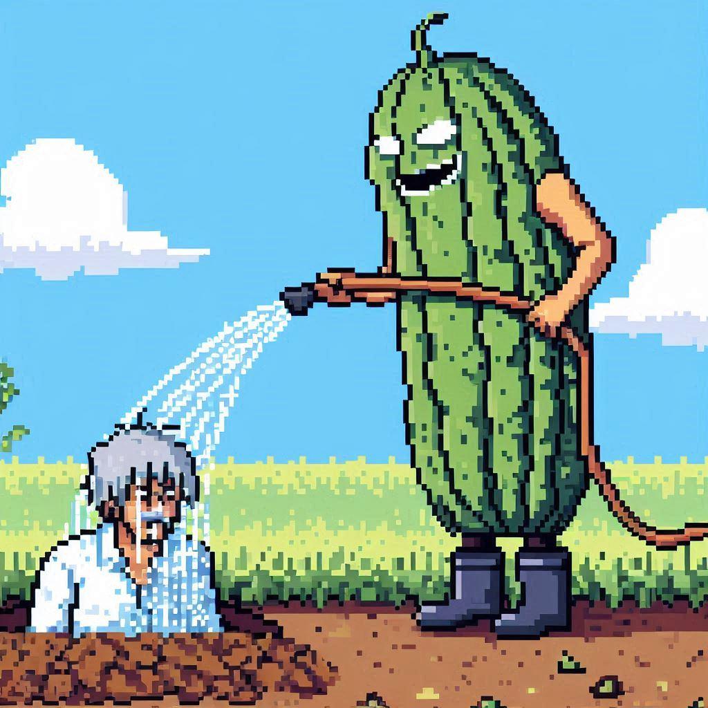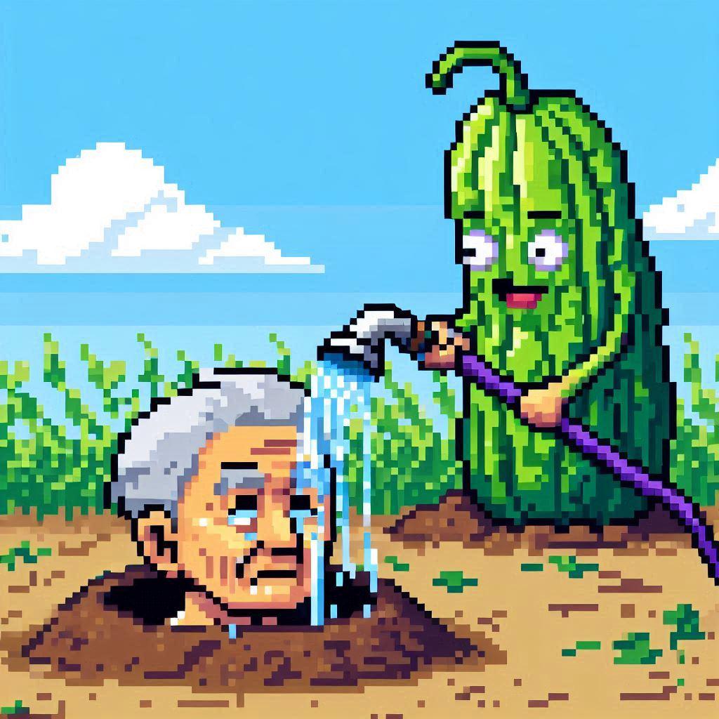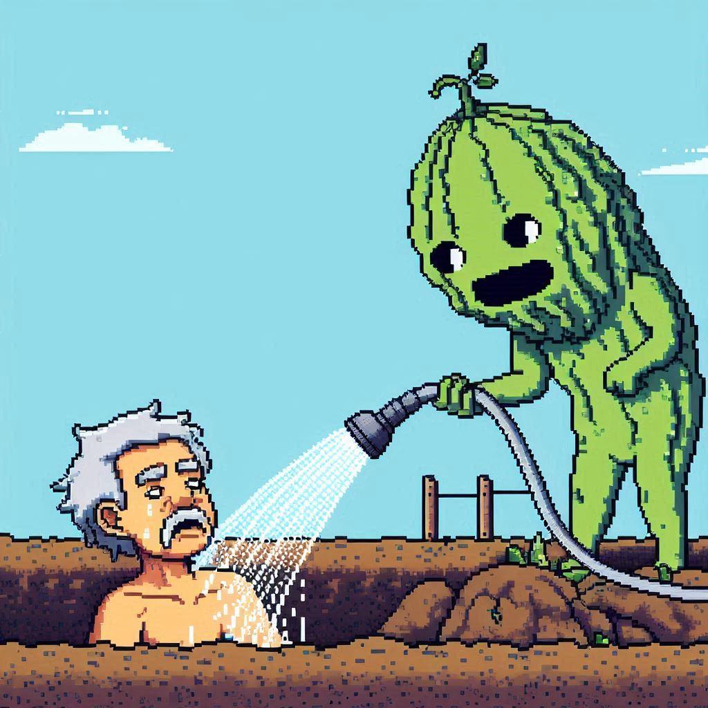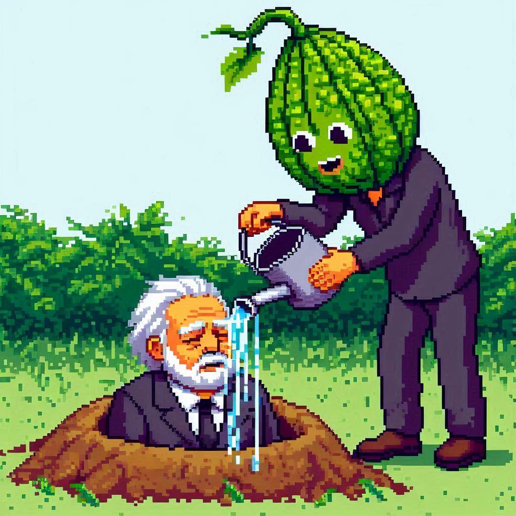 しなびた意味の無いおじさんに水をやるゴーヤ。