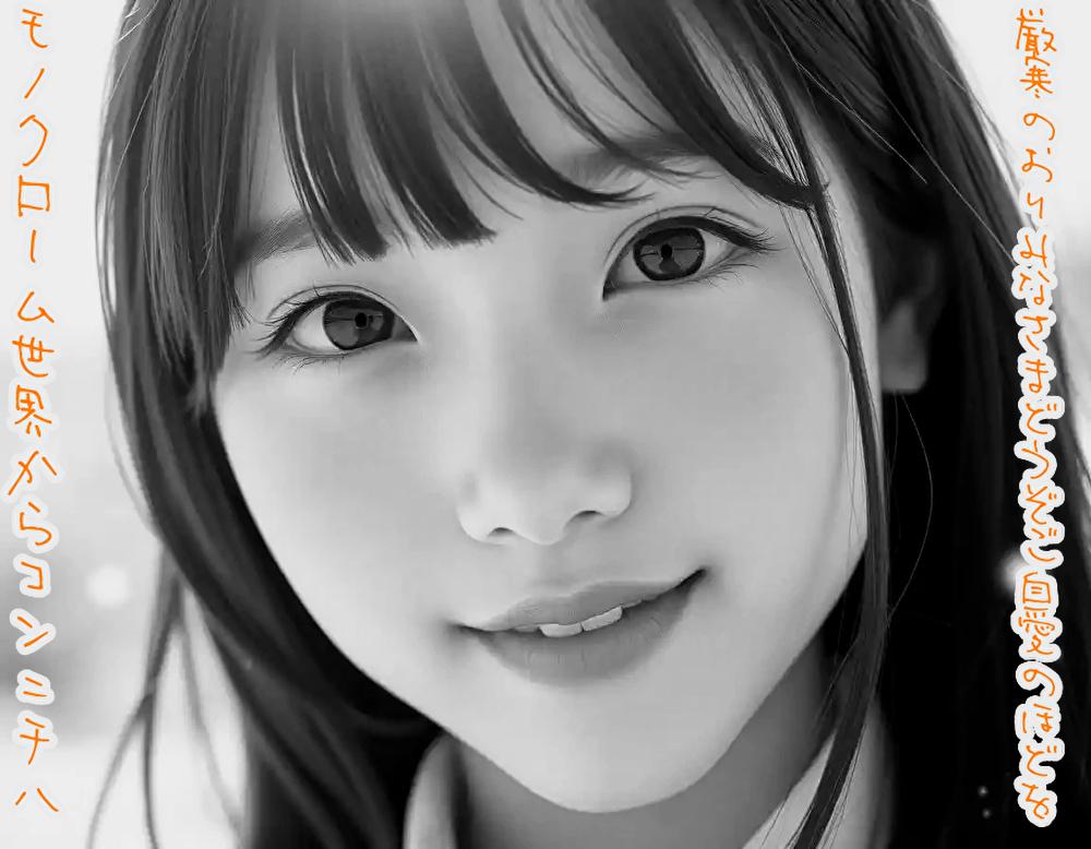 白黒でわかりづらいですがこの画像の背景は全部一面雪景色です.. なので#雪景色でよろしくお願いいたします(^^ゞ