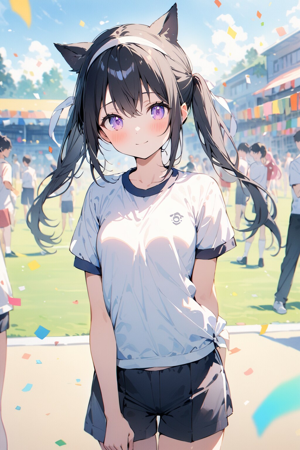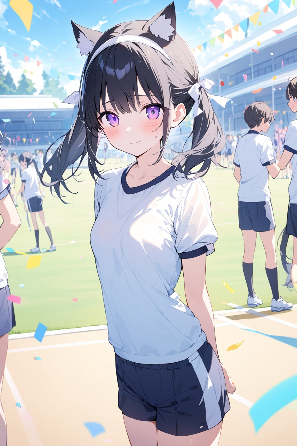・シャツのラインが青くなってしまいましたが体操着はいちおう黒。こちらは猫の獣人族に人気のスポーツウェアメーカー、ニャンダス製の体操着という妄想設定です😁