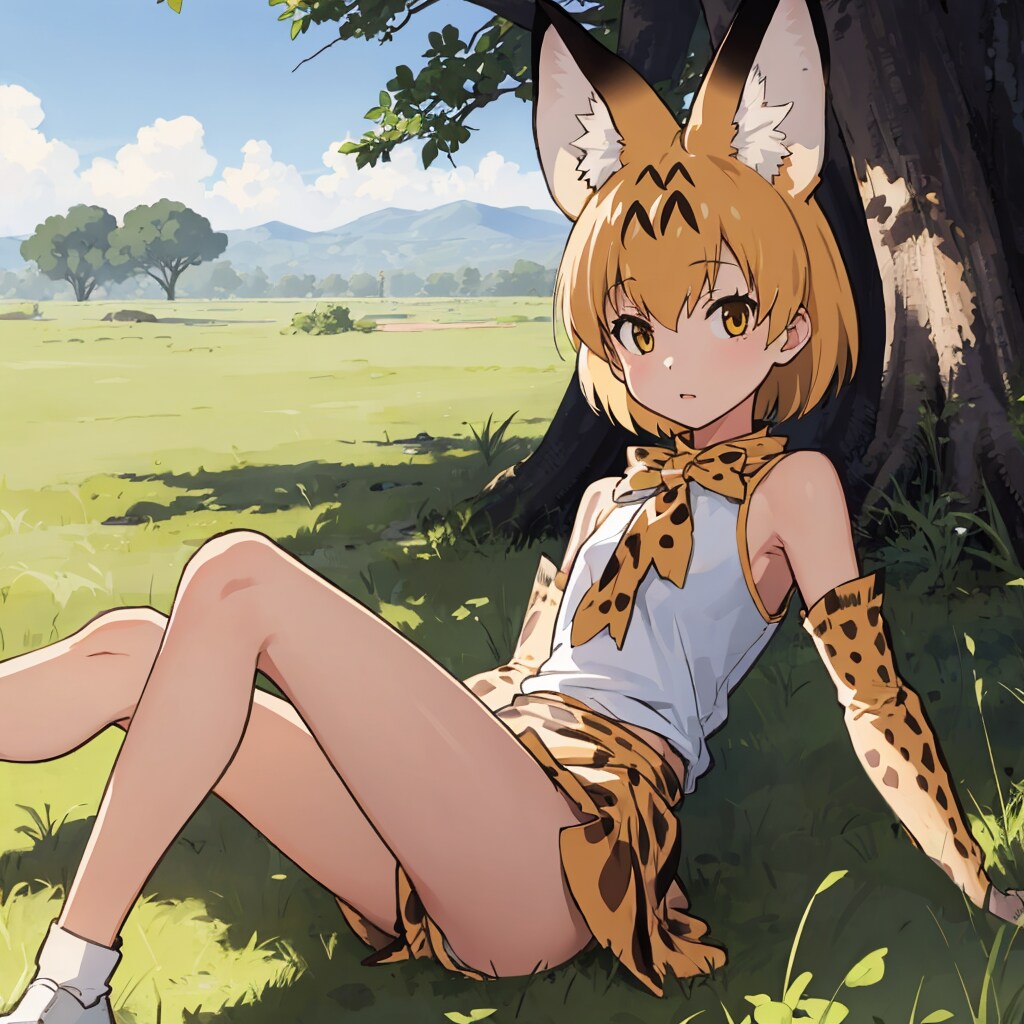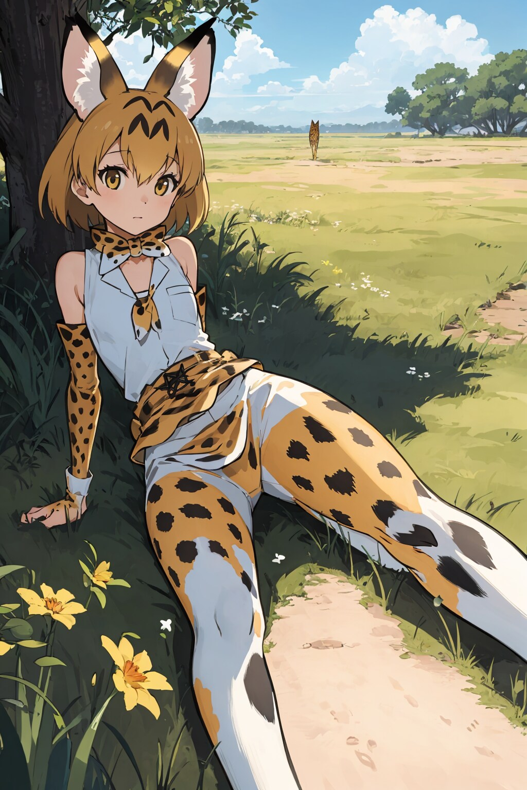 学習データに入っているのでしょう。serval (kemono friends) だけでそれらしい画像が生成されます。