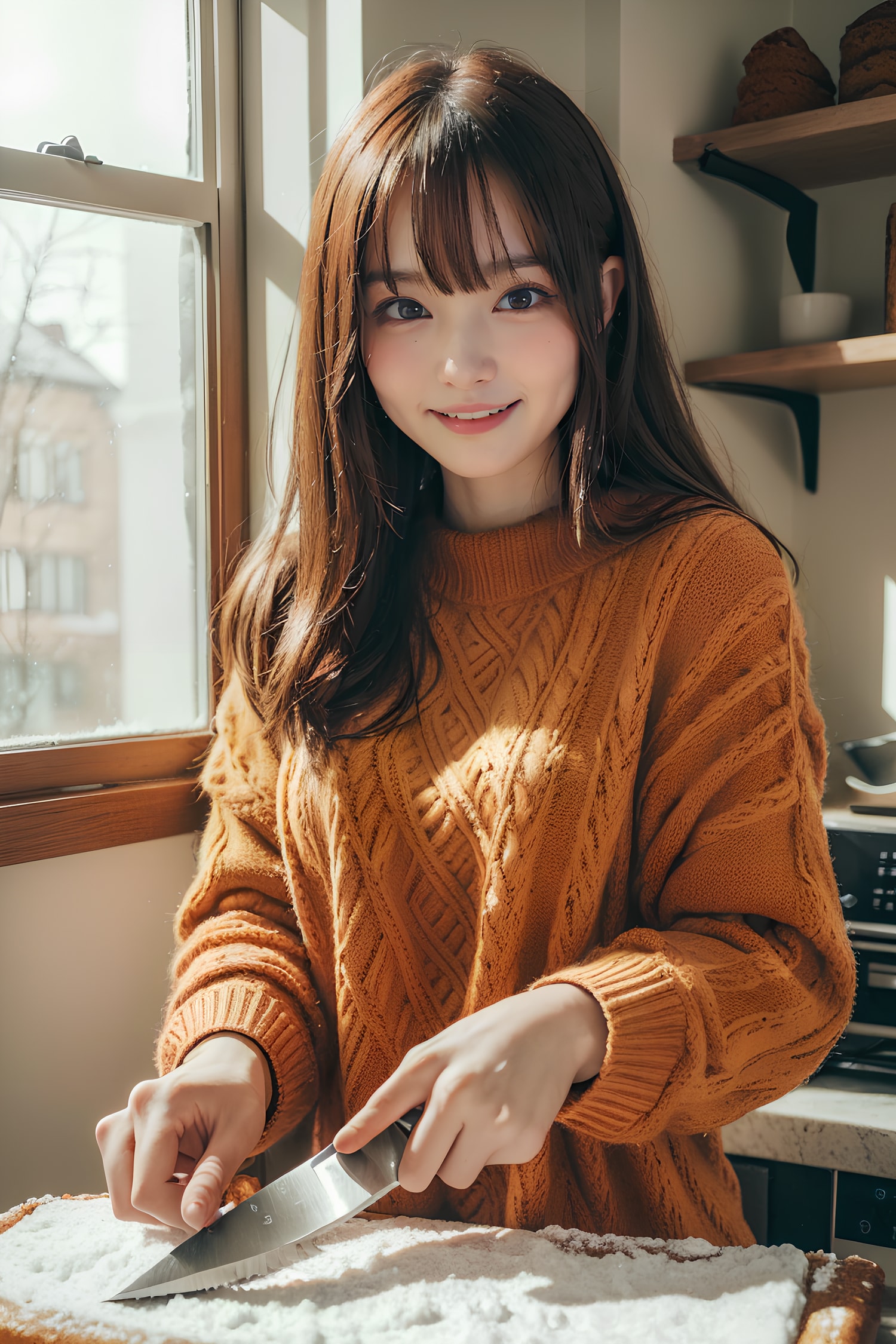 ゆきにゃんは大小さまざまなナイフでシュトーレンモドキを切っています🥰
