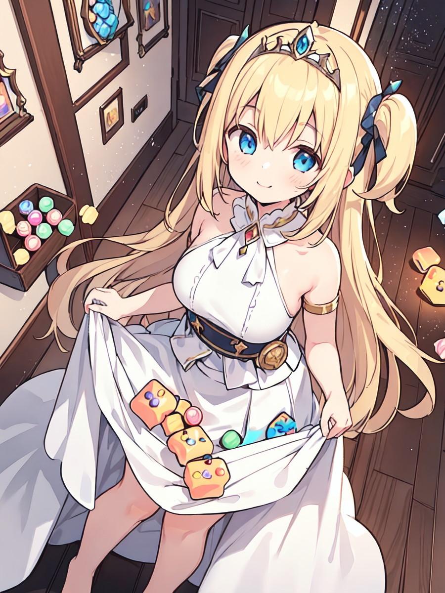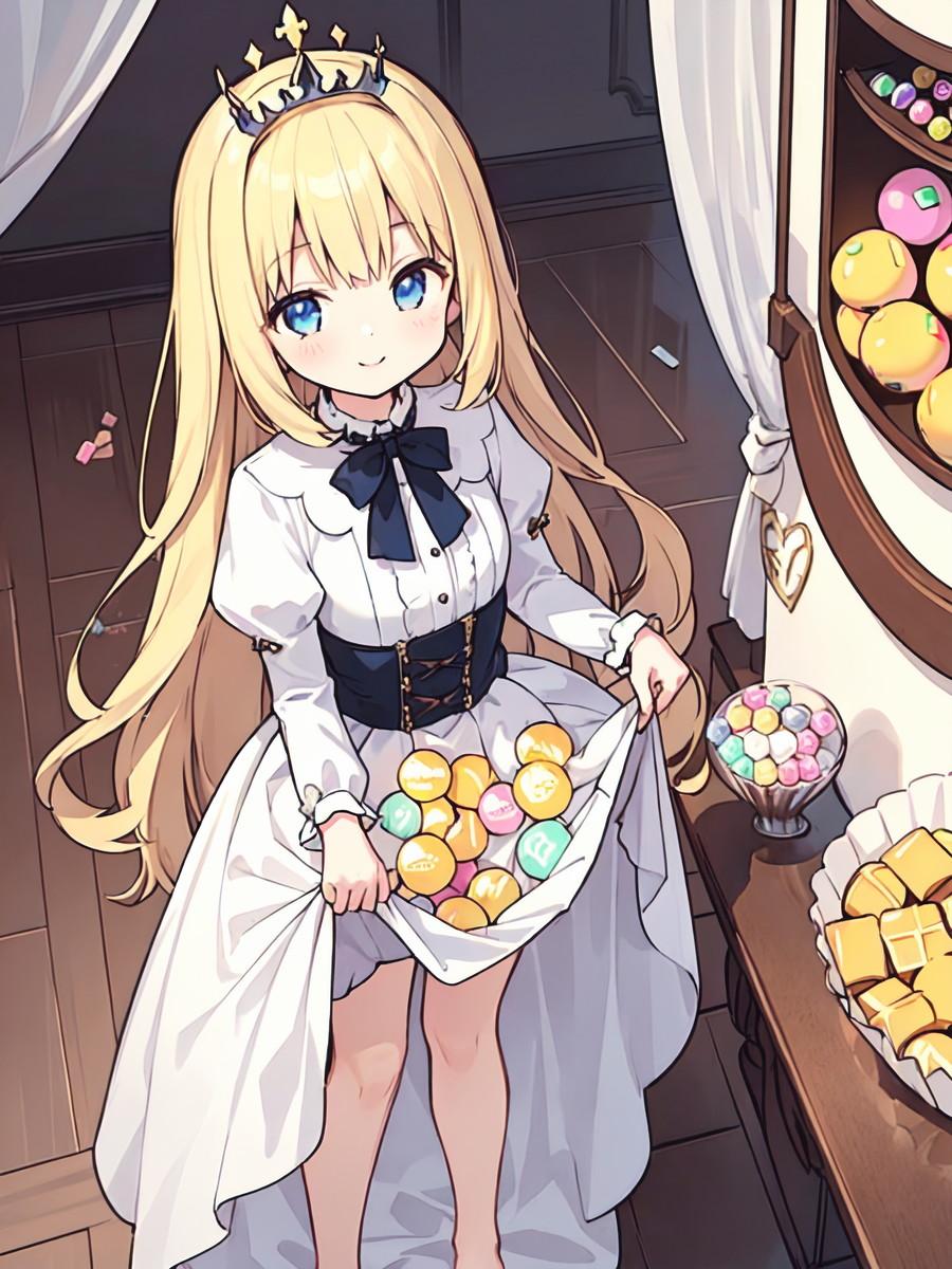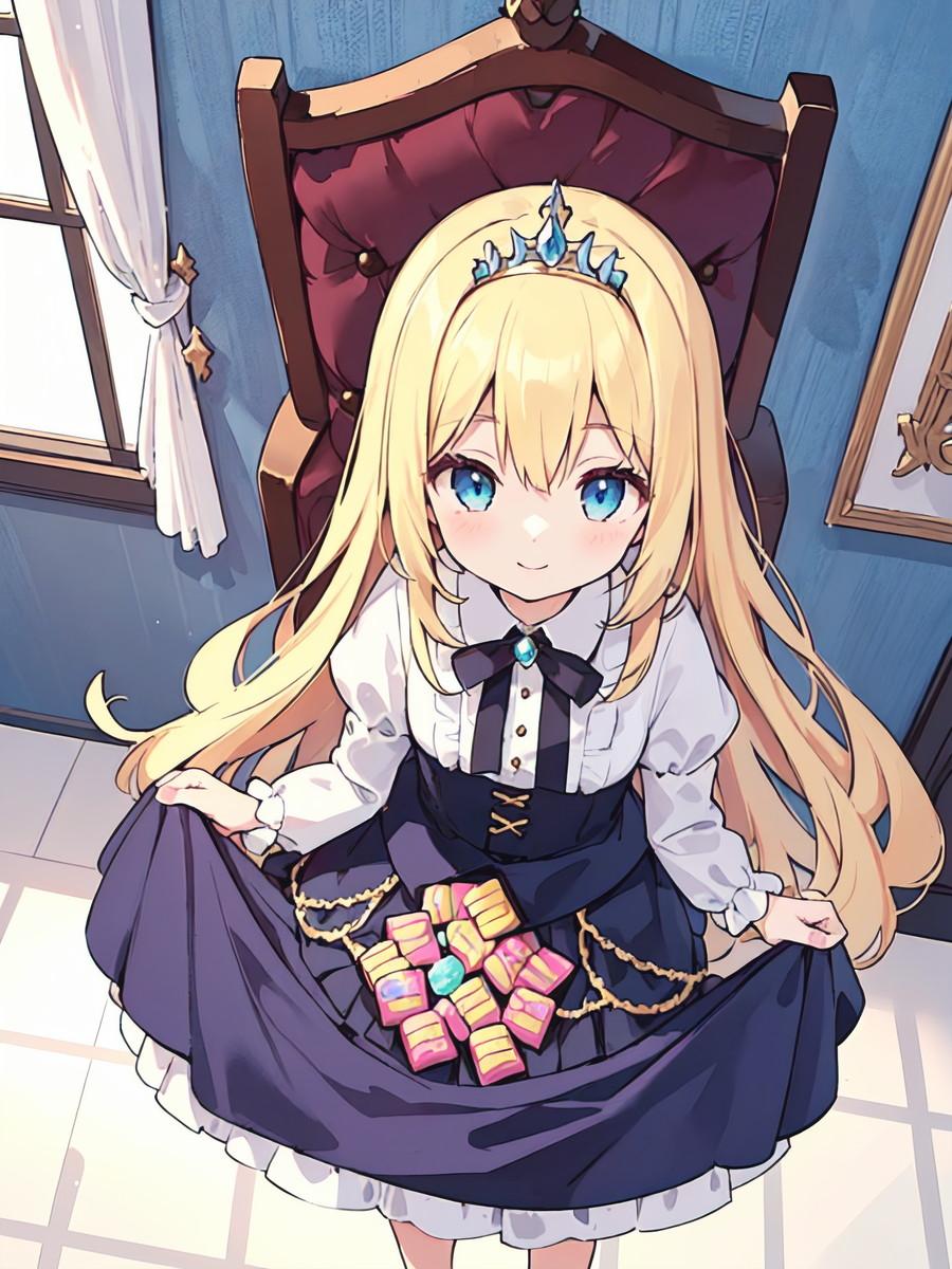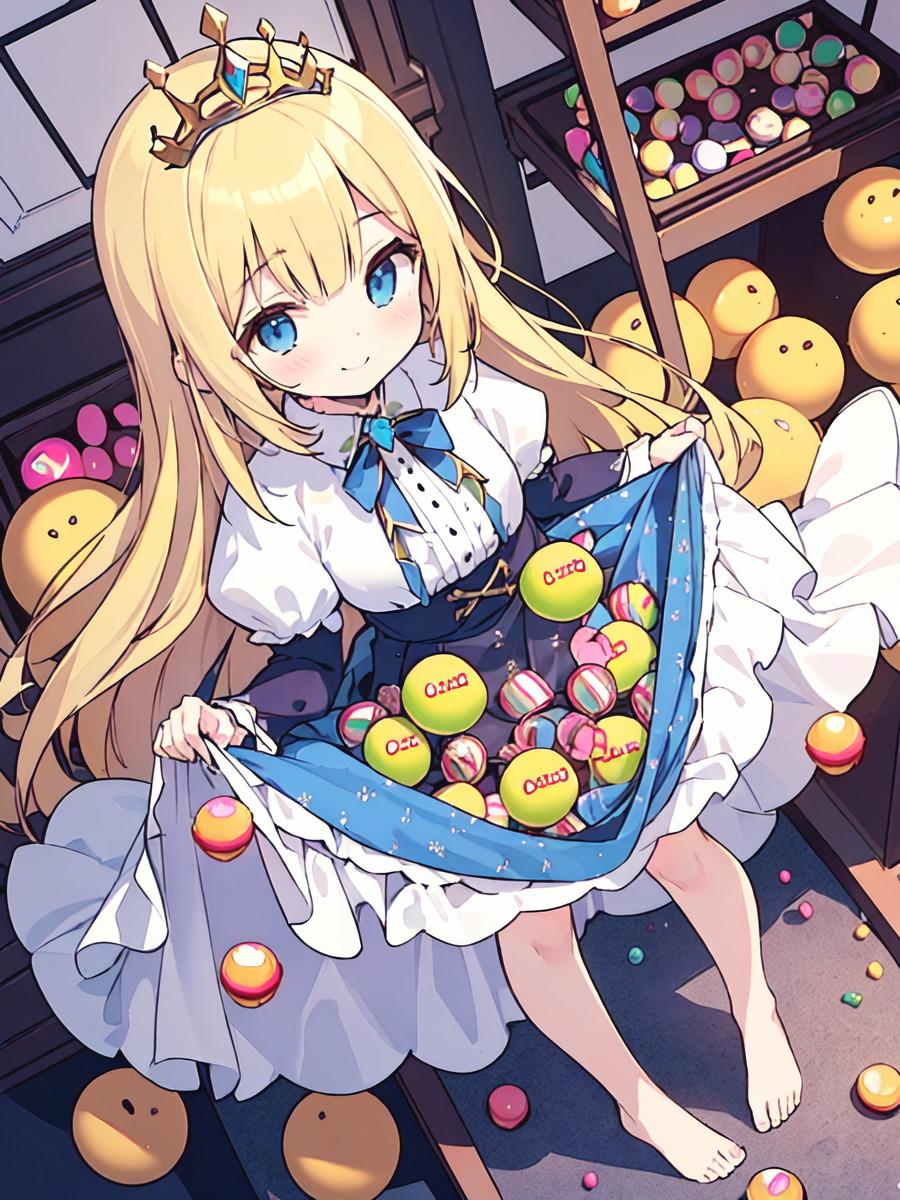 つまんで引っ張ったスカートの上にキャンディをちゃんと乗せるのがStableDiffusionではめっちゃ苦労した